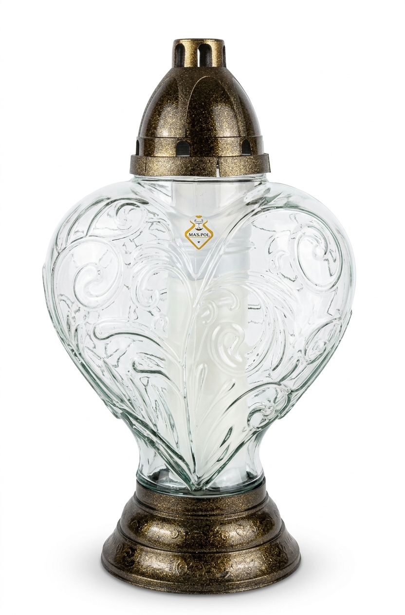 Znicz szklany 846 bezbarwny z wzorem SERCE ZŁOTY 38 cm - 1 szt