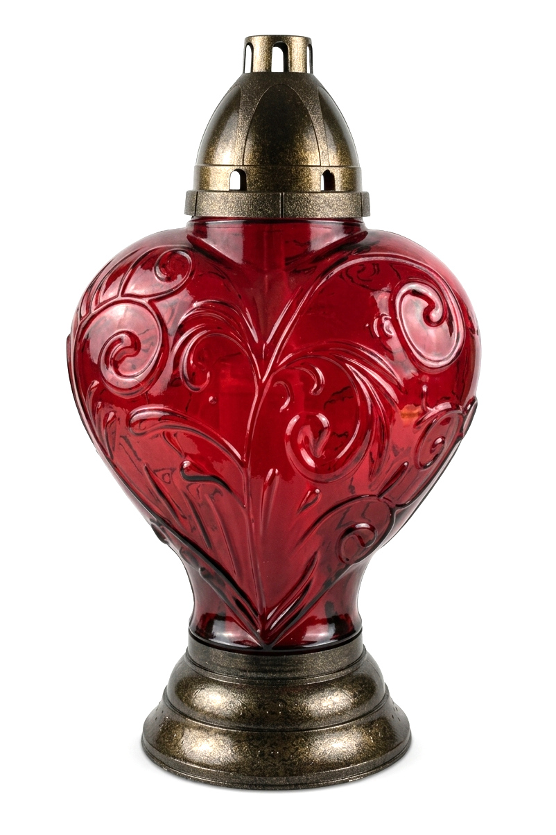 Znicz szklany 846 czerwony z wzorem SERCE ZŁOTY 38 cm - 1 szt