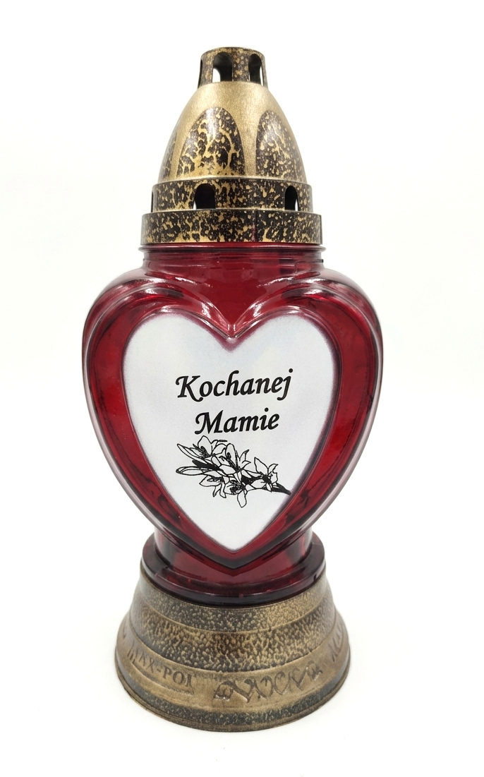 Znicz szklany 86 POD czerwony Kochanej Mamie SERCE ZŁOTY 22 cm - 1 szt