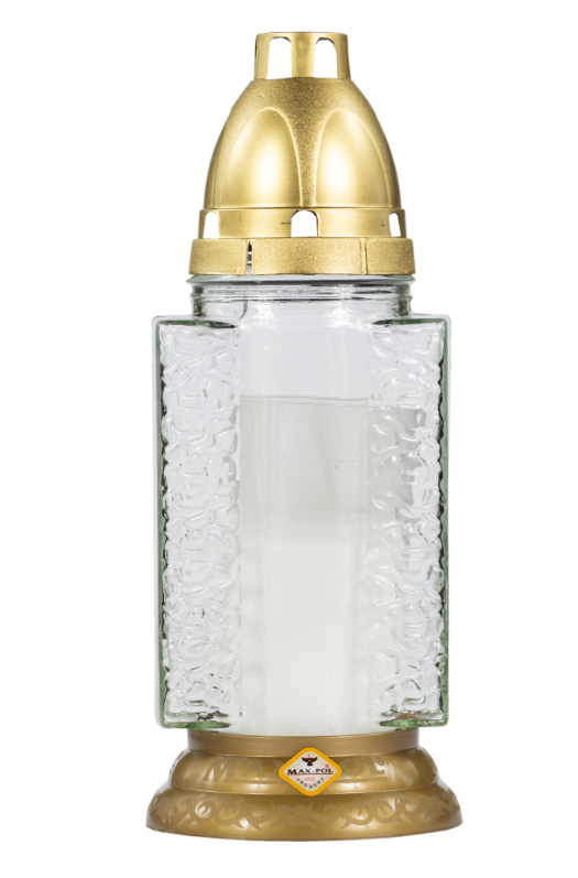 Znicz szklany 872 bezbarwny z wzorem ZŁOTY 21 cm - 1 szt