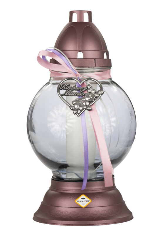 Znicz szklany 958 GŁADKI dymiony z wstążką BORDOWY Kochanej Mamie 33 cm - 1 szt
