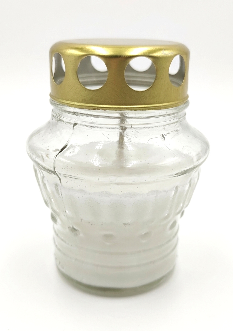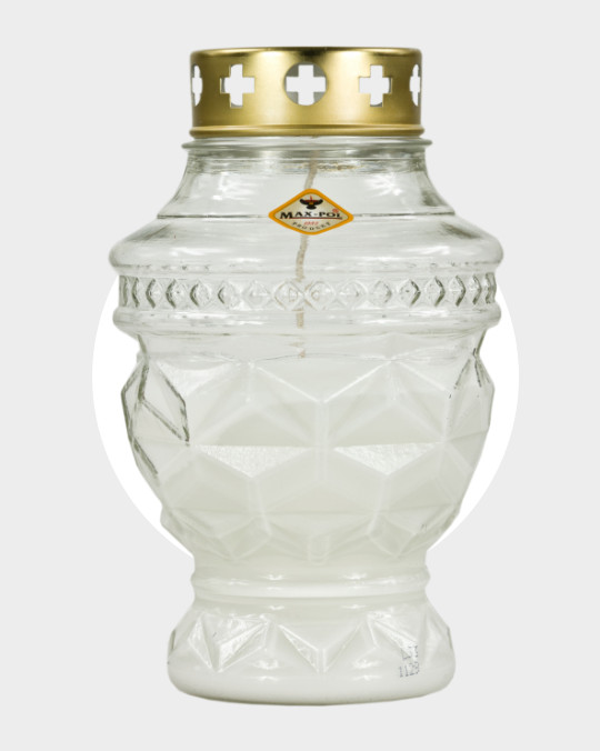 Znicz szklany zalewany 21z BEZBARWNY blaszka 10 cm - 1 szt