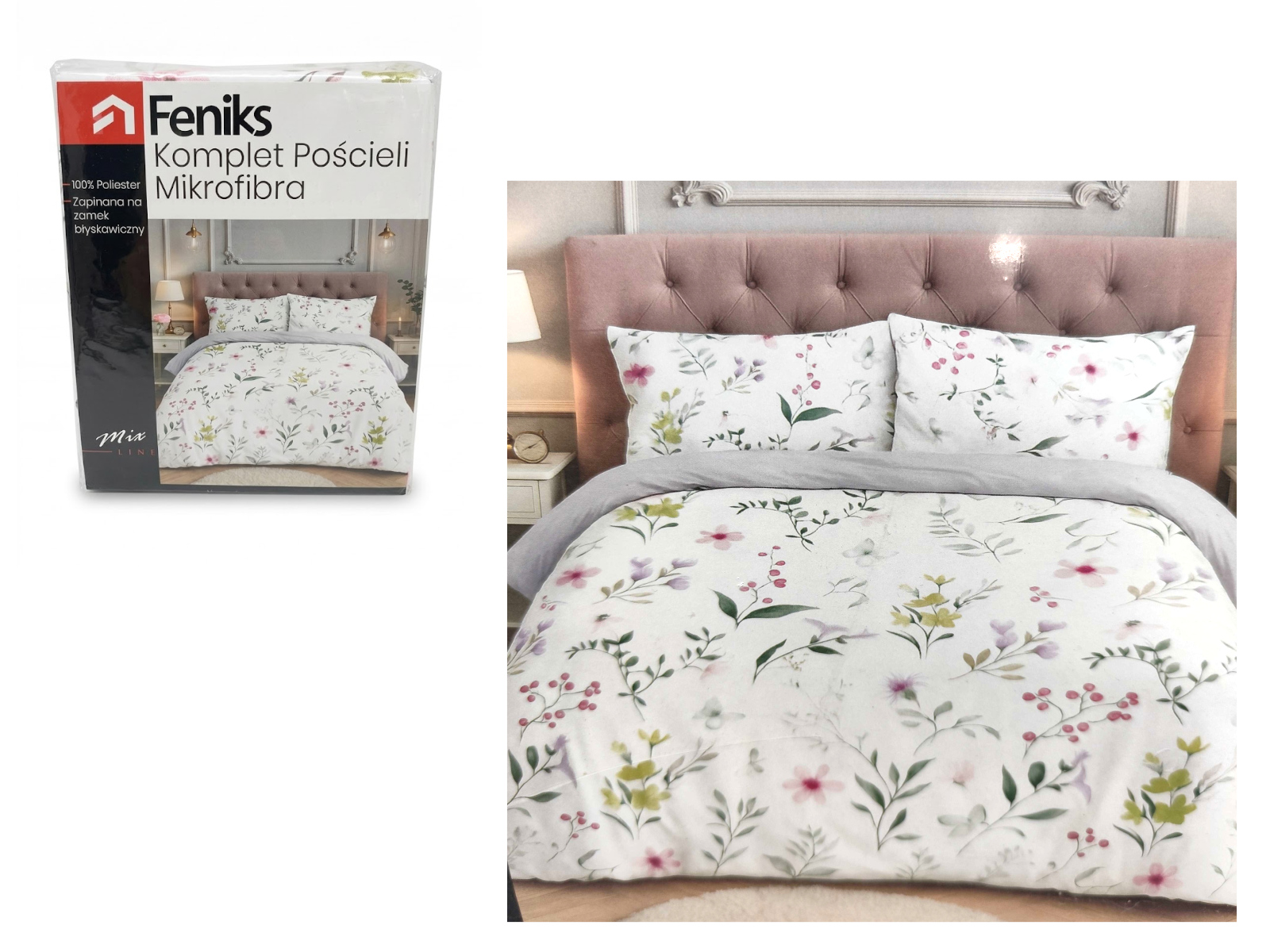 Komplet pościeli mikrofibra WZ02 BIAŁA W KOLOROWE KWIATY