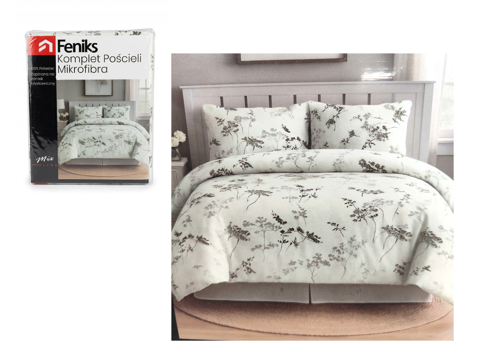 Komplet pościeli mikrofibra WZ01 BIAŁA W BRĄZOWE GAŁĄZKI
