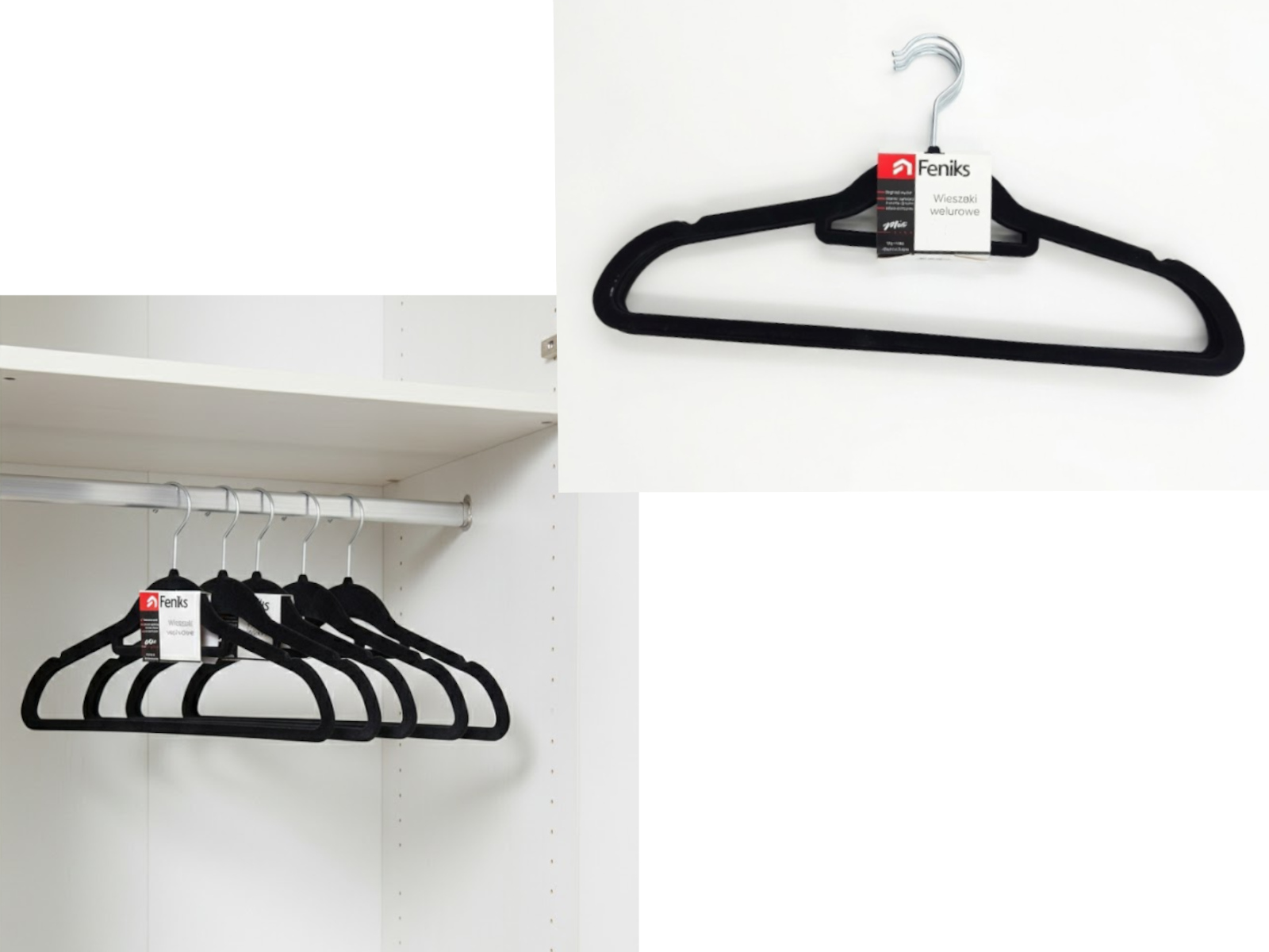 Wieszak na ubrania CZARNY WELUR 45x23x0,5 cm - kpl 5 szt