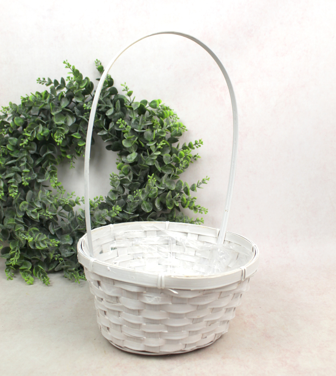 Koszyk bambusowy okrągły BIAŁY z folią 40x25x13 cm