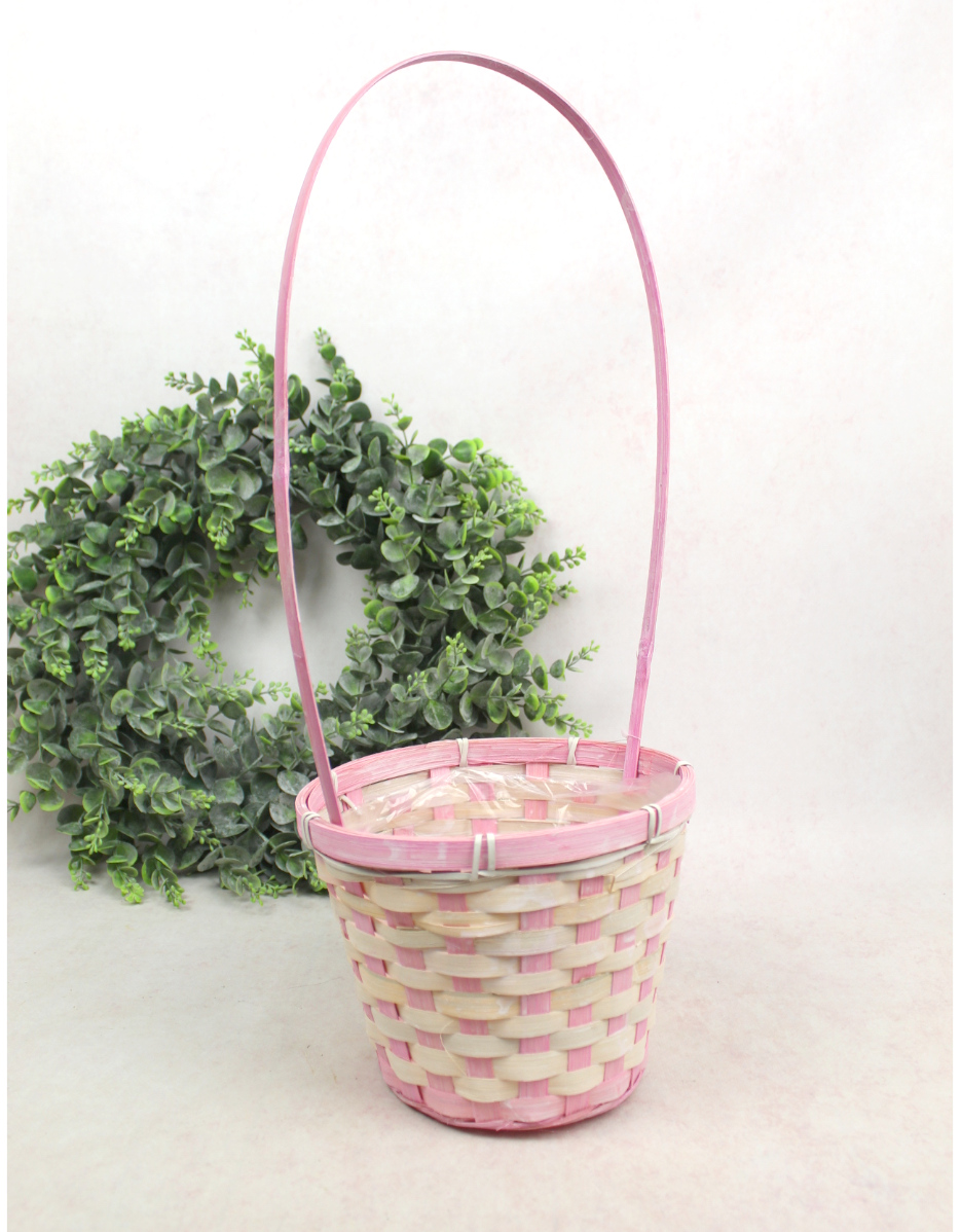 Koszyk bambusowy okrągły z folią RÓŻOWO-BEŻOWY 53x19x16 cm