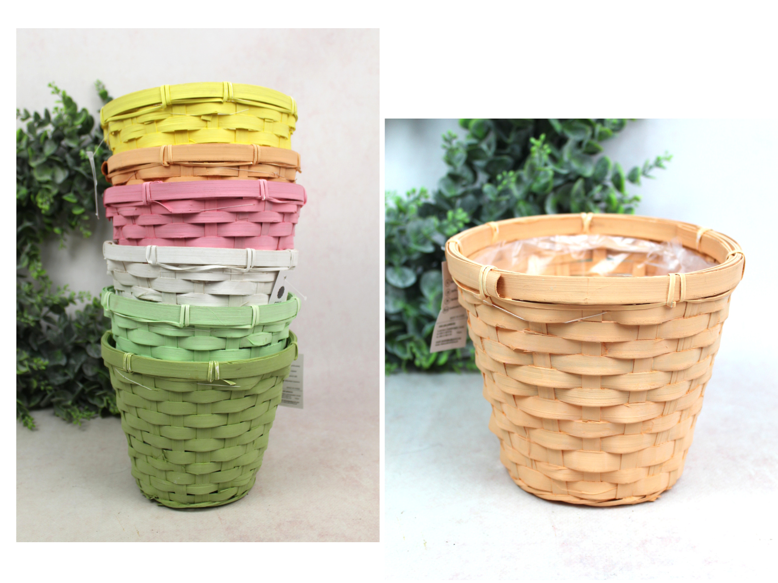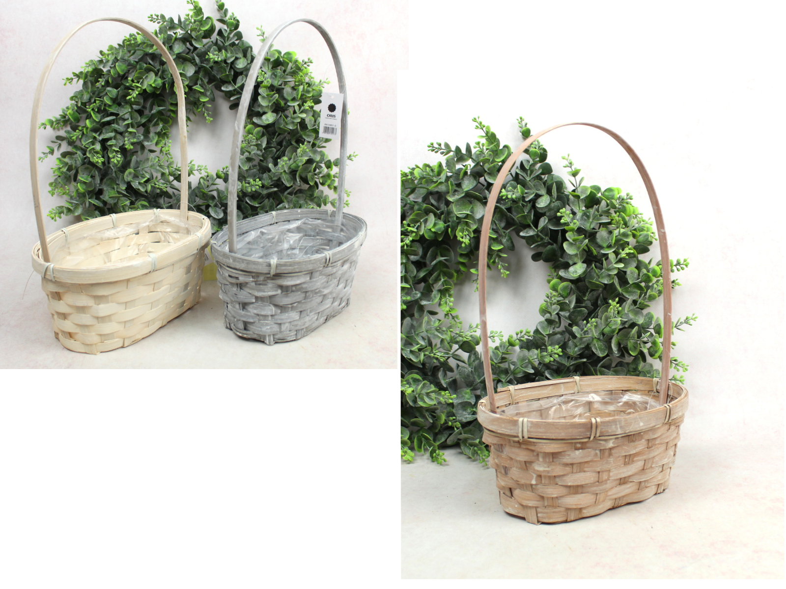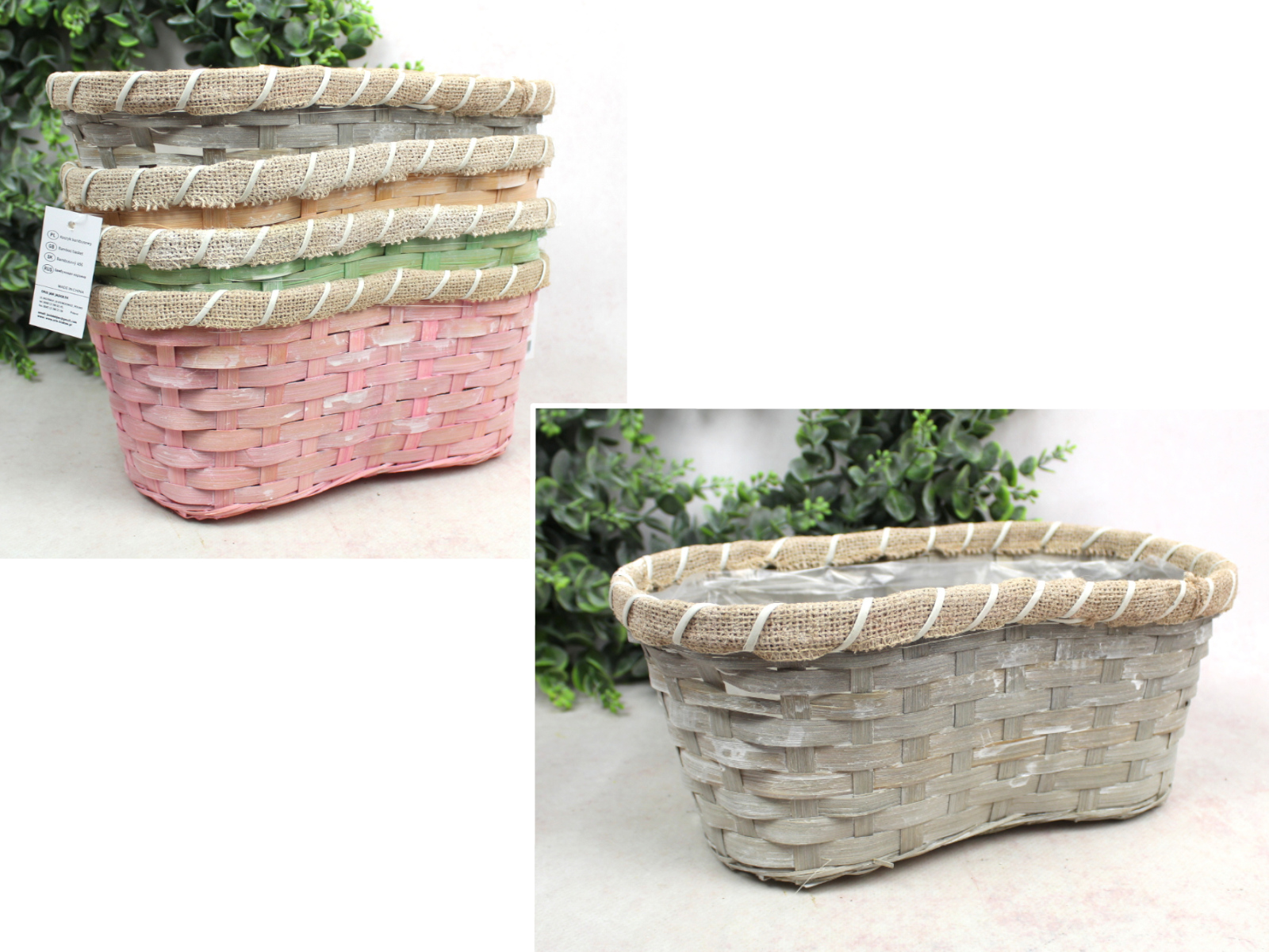 Koszyk bambusowy owalny z folią MIX KOLOR 35x22x15 cm