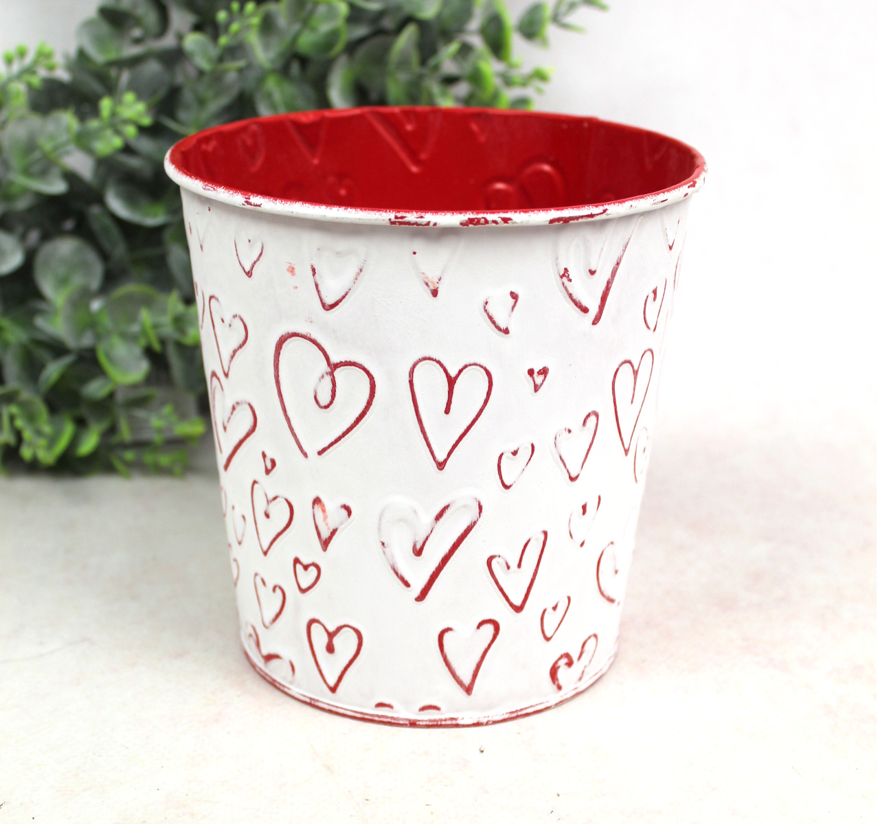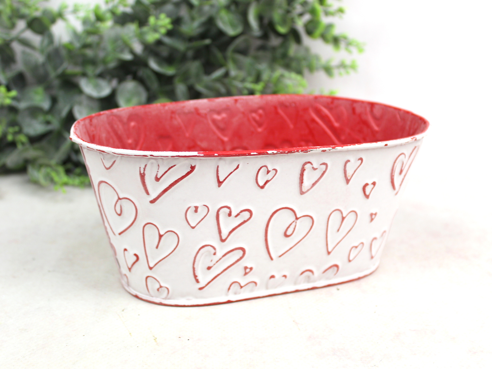 Osłonka metalowa BIAŁO-CZERWONA w Serca 21x12x9 cm