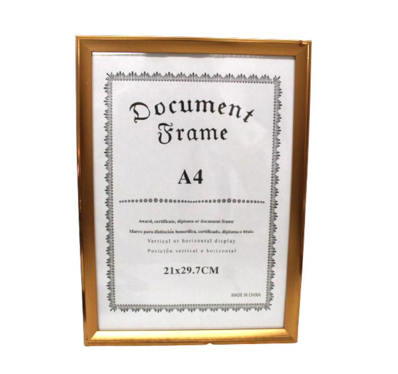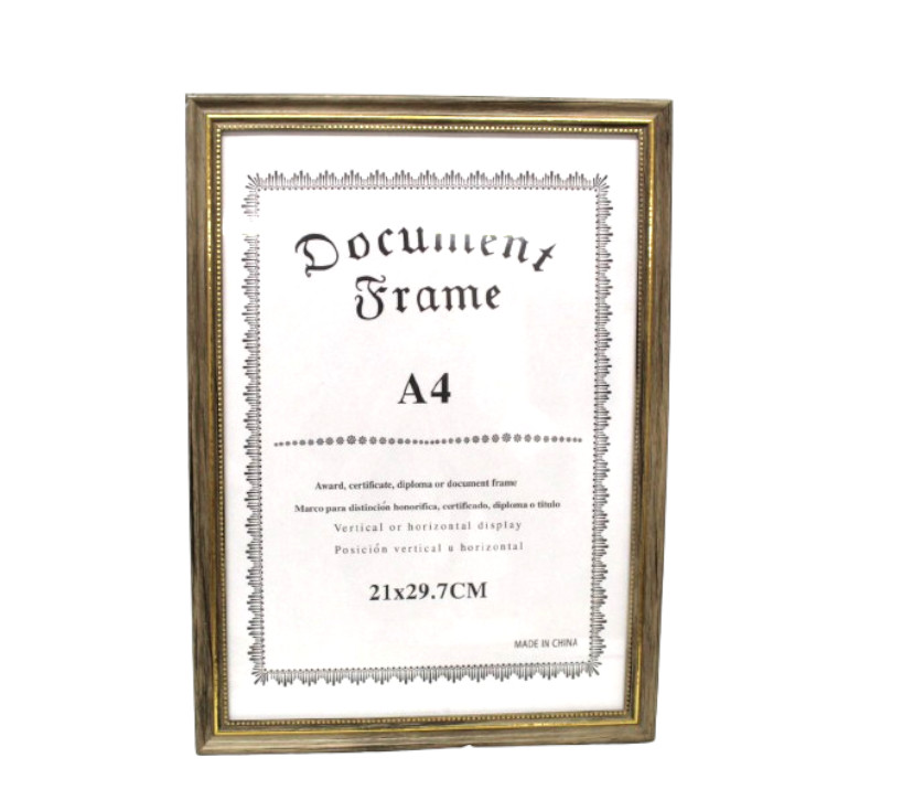 Ramka na zdjęcie EFEKT DREWNA szaro-brązowa złoty środek, na dyplom WISZĄCA A4 29,7x21 cm