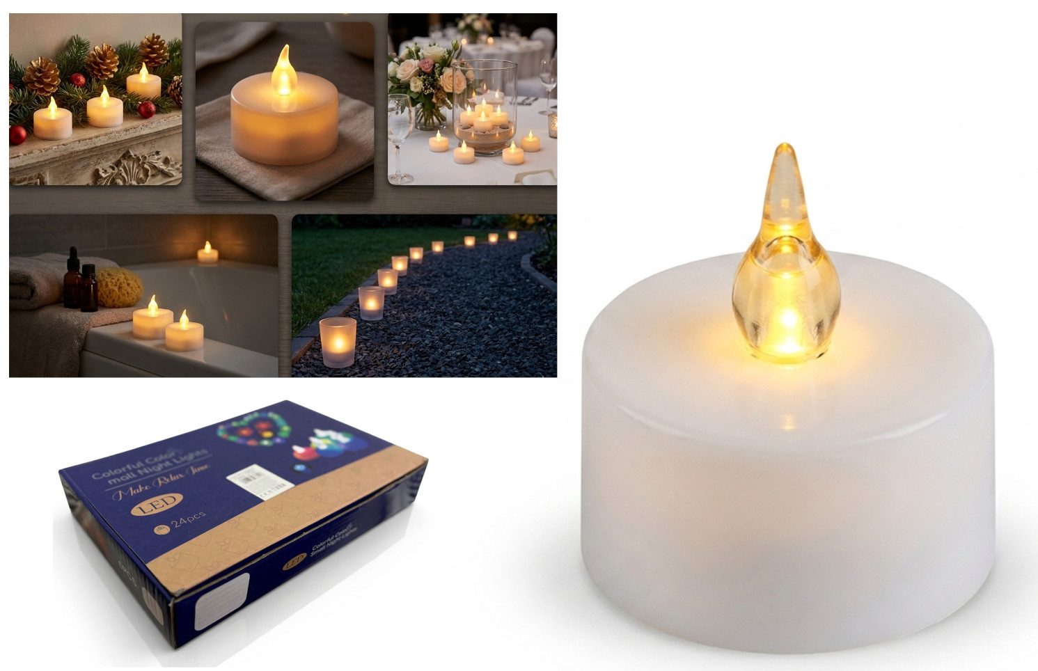 Świeczka, podgrzewacz LED stały płomień 3,5x3,5 cm CIEPŁY BIAŁY - 1 szt