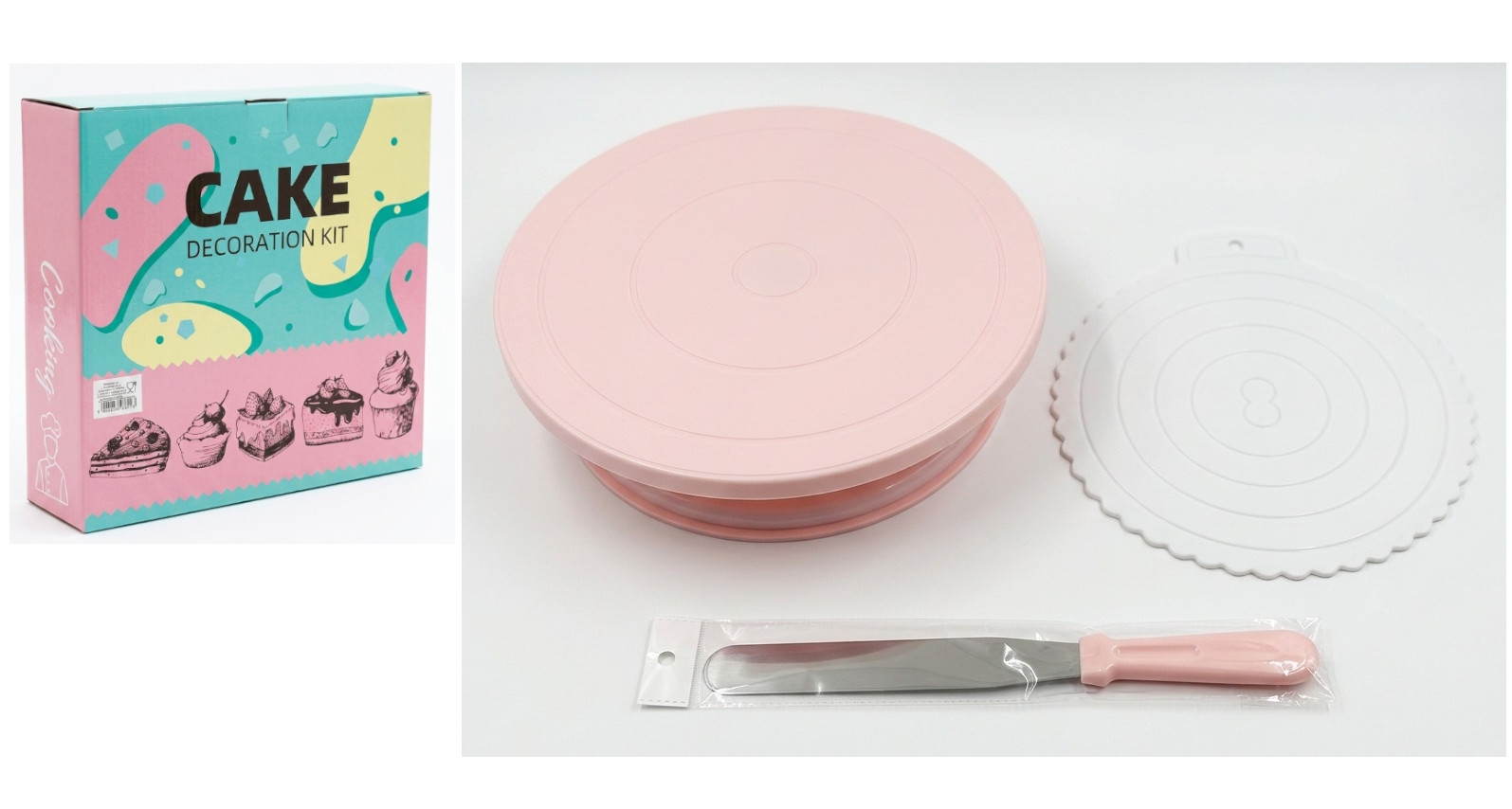 Zestaw do ciasta patera OBRACANA, podkładka i łopatka RÓŻOWY kpl 3 el.