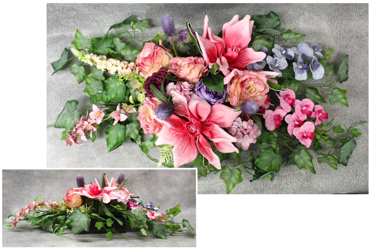 Stroik zalewany XXL 2 KWIATY PIANKOWE RÓŻOWE + mieszane kwiaty misa kwadrat (ok. 100x50x27 cm ) ok. 3,2 kg