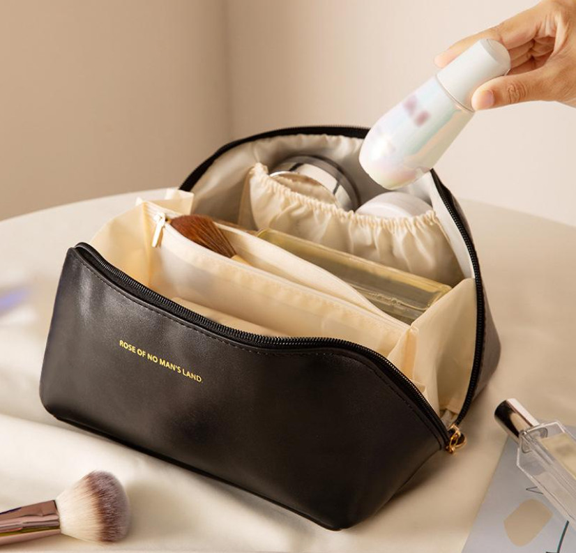 Kosmetyczka, organizer na kosmetyki z ekoskóry rozkładana 24x13x12 cm CZARNA