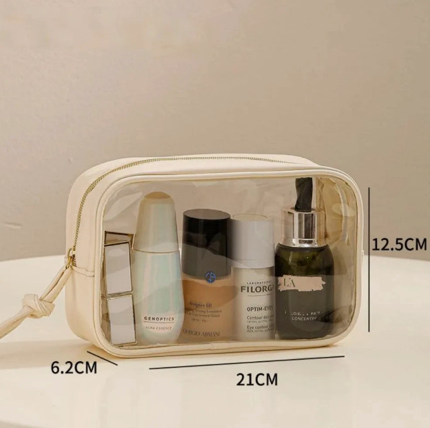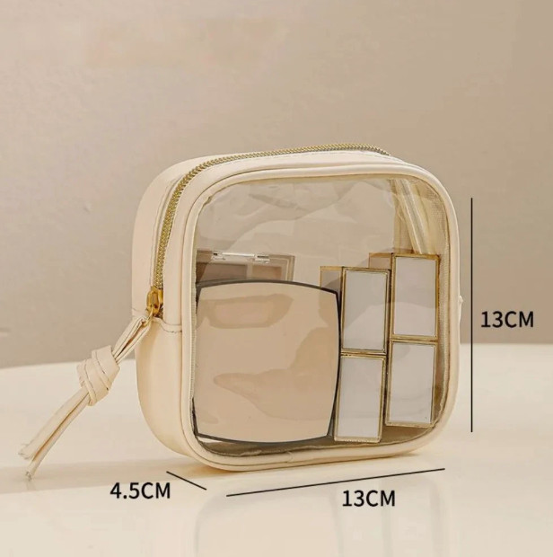 Kosmetyczka transparentna 13x13x4,5 cm BEŻOWA