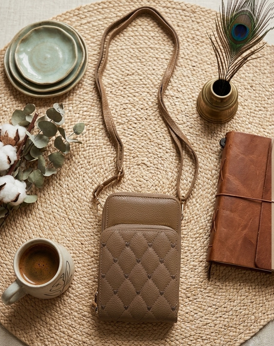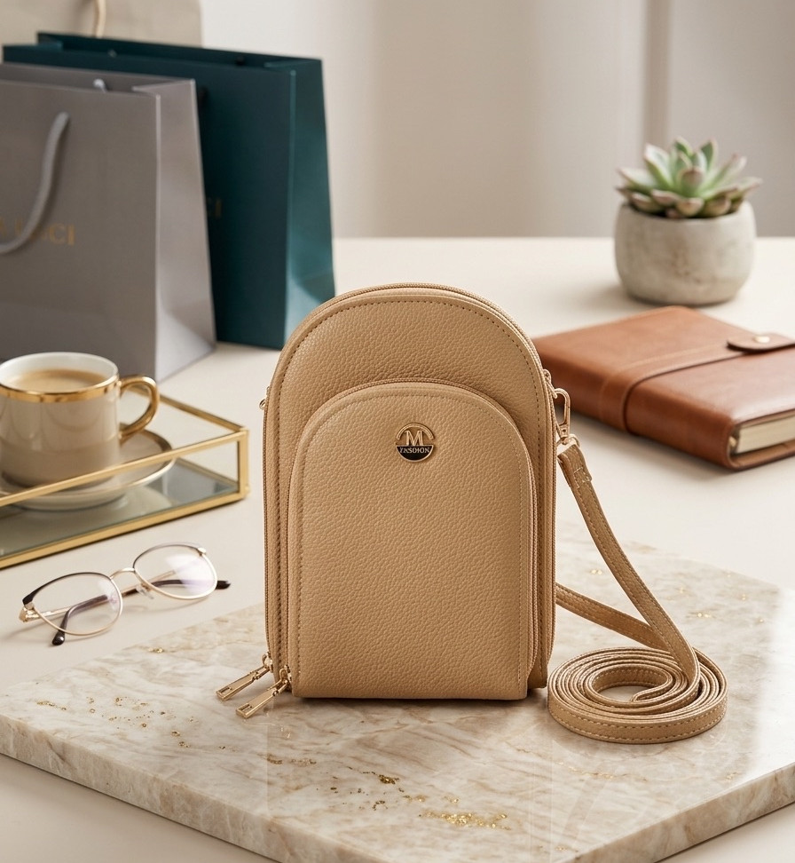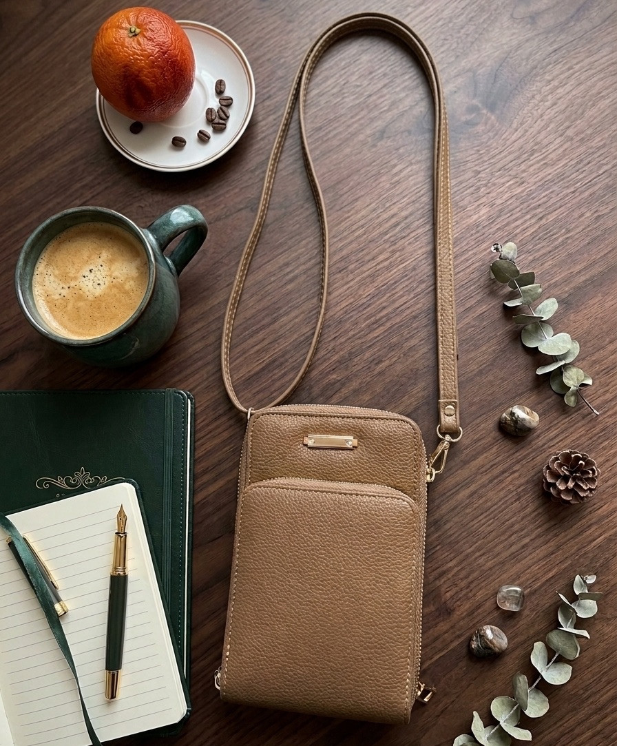Torebka przez ramię ekoskóra ZAOKRĄGLONA  20x14x6 cm BRĄZ JASNY