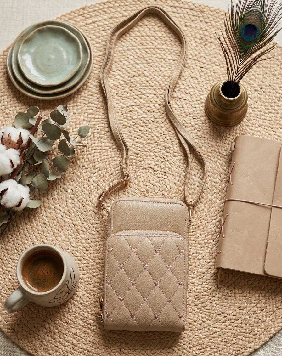 Torebka przez ramię ekoskóra PROSTOKĄTNA serduszka 18x11 cm BEŻOWA