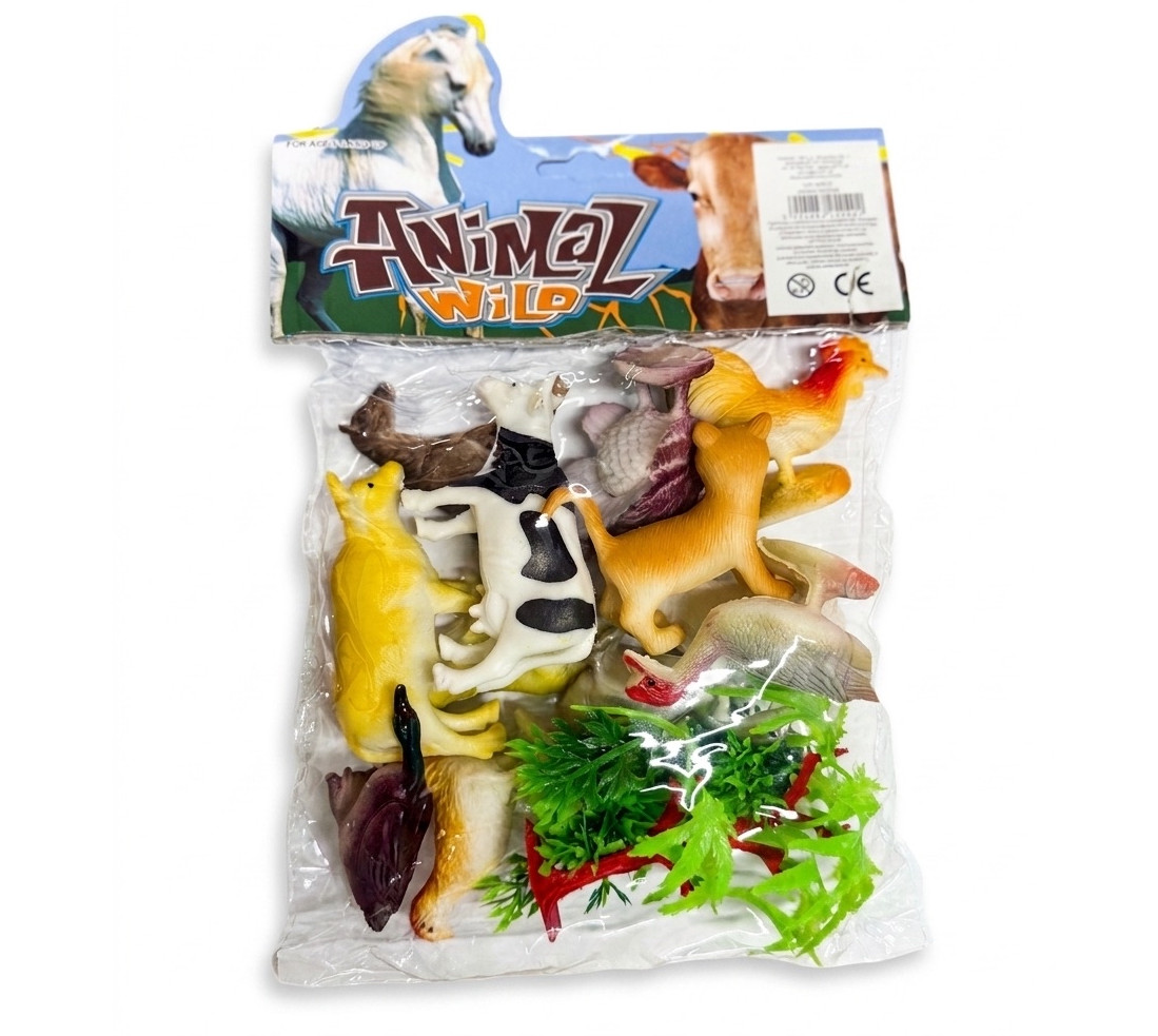 Zabawka, figurka ZWIERZĘTA farma (1 szt ok. 8 cm)  kpl. 12 szt w folii + roślinki
