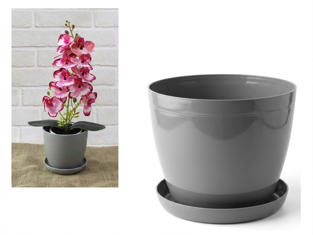 Doniczka Classic z podstawką nr 5 SZARA - 1 szt