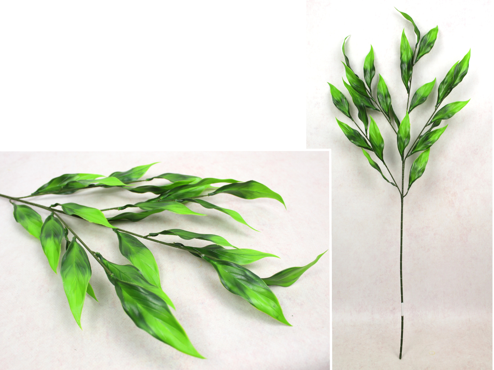 Gałązka RUSKUS silikonowa podłużne liście wys. 88 cm ZIELONY z jasnymi brzegami
