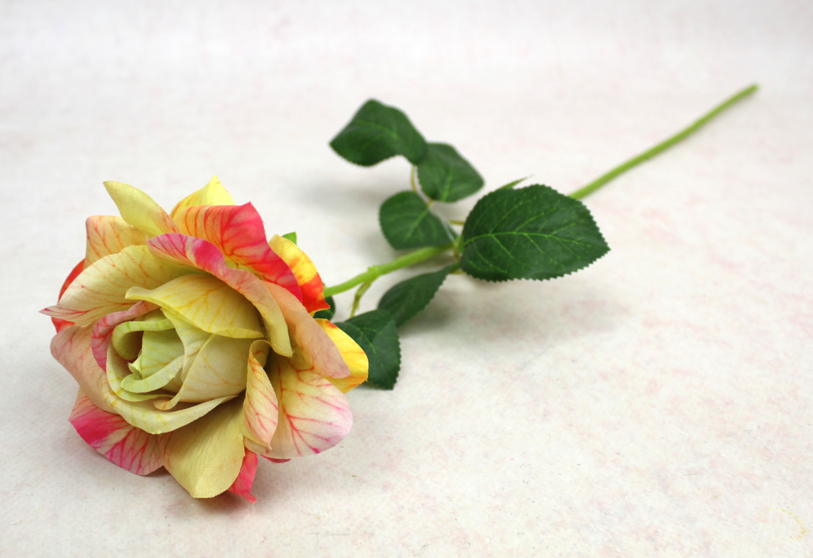 Kwiat RÓŻA pojedyncza wys. 58 cm (kwiat 11x5 cm) ŻÓŁTO-RÓŻOWA cieniowana