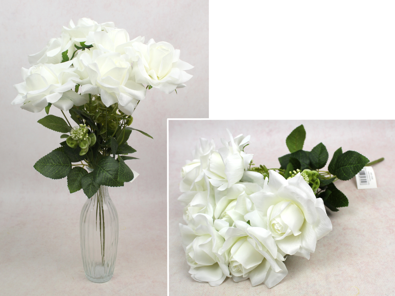 Kwiat RÓŻA wys. 48 cm, 7 łodyg (7 kwiatów 12x6 cm) BIAŁA