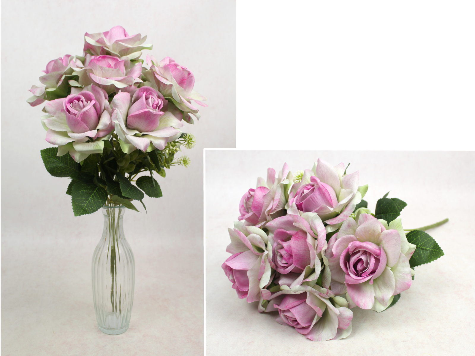 Kwiat RÓŻA wys. 48 cm, 7 łodyg (7 kwiatów 12x6 cm) RÓŻOWAO-ZIELONA