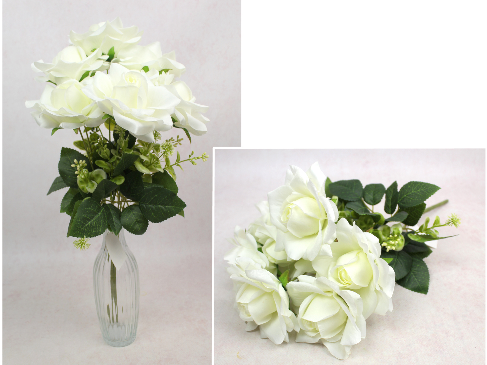 Kwiat RÓŻA wys. 48 cm, 7 łodyg (7 kwiatów 12x6 cm) ŚMIETANOWA