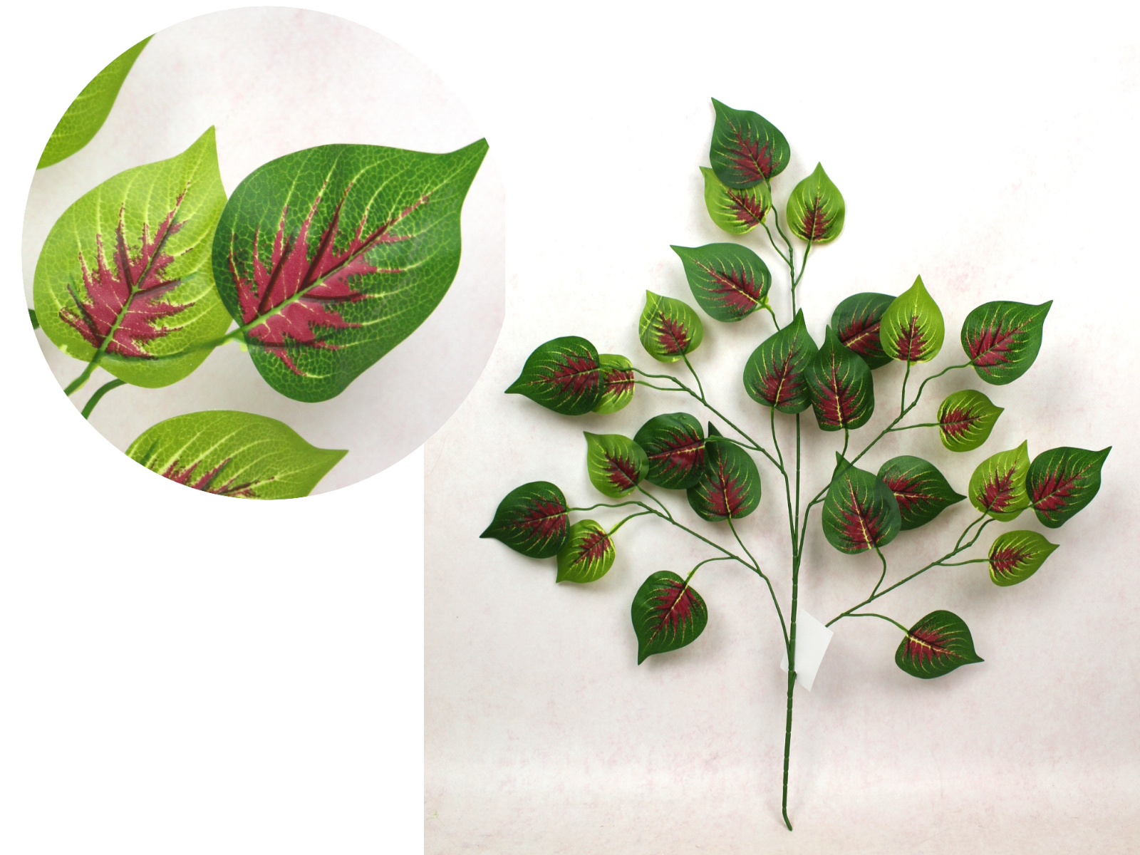 Liść 5-ramienny silikonowy FIKUS, BENJAMIN wys. 58 cm ZIELONY z czerwonym środkiem