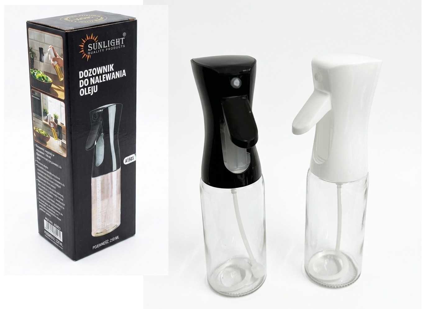 Butelka, spryskiwacz do oliwy, octu szkło-plastik 250 ml mix czarna, biała