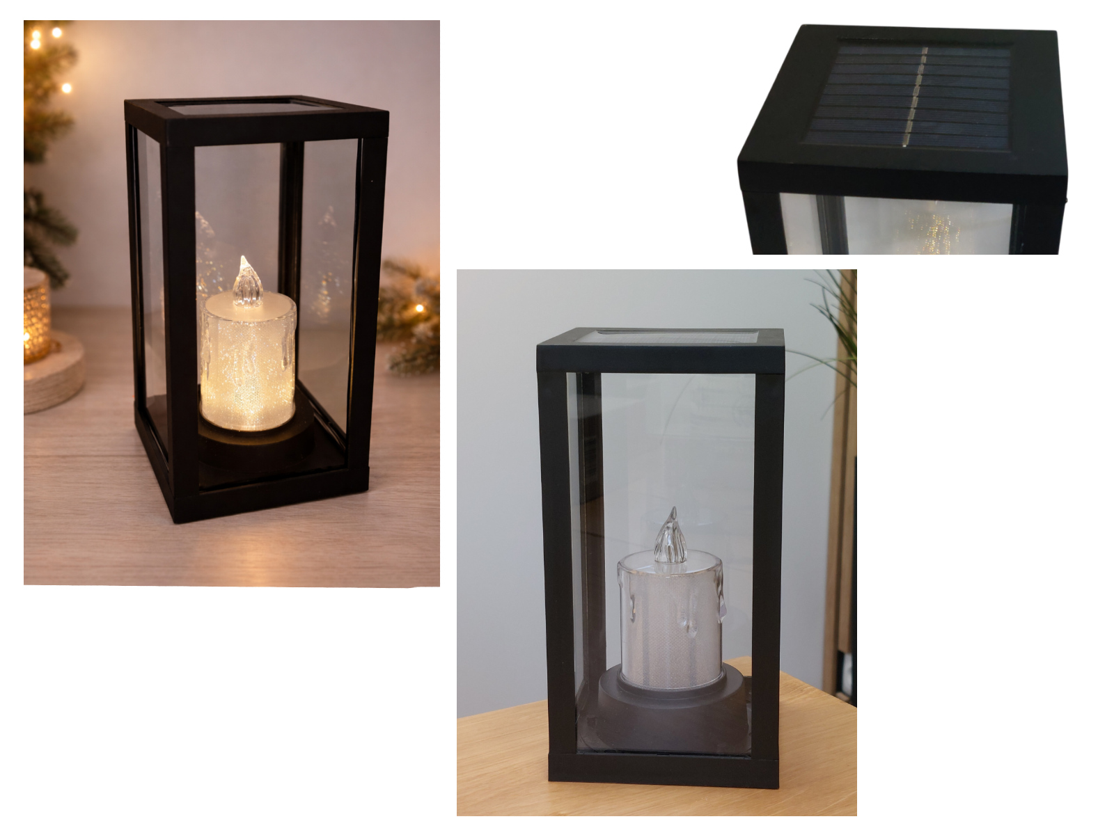 Latarenka SOLARNA szkło-plastik z akrylową świecą 20x10x10 - CZARNA