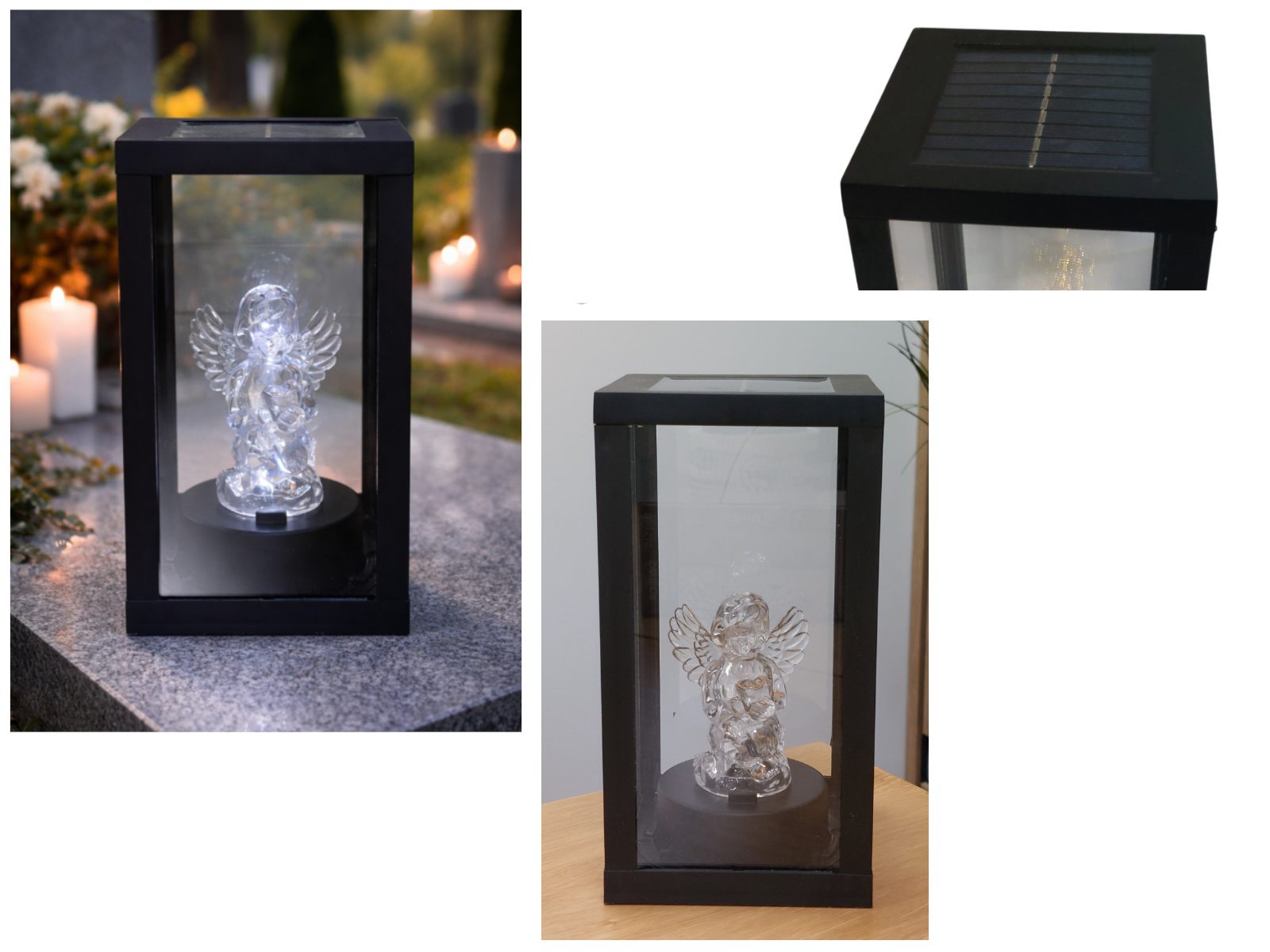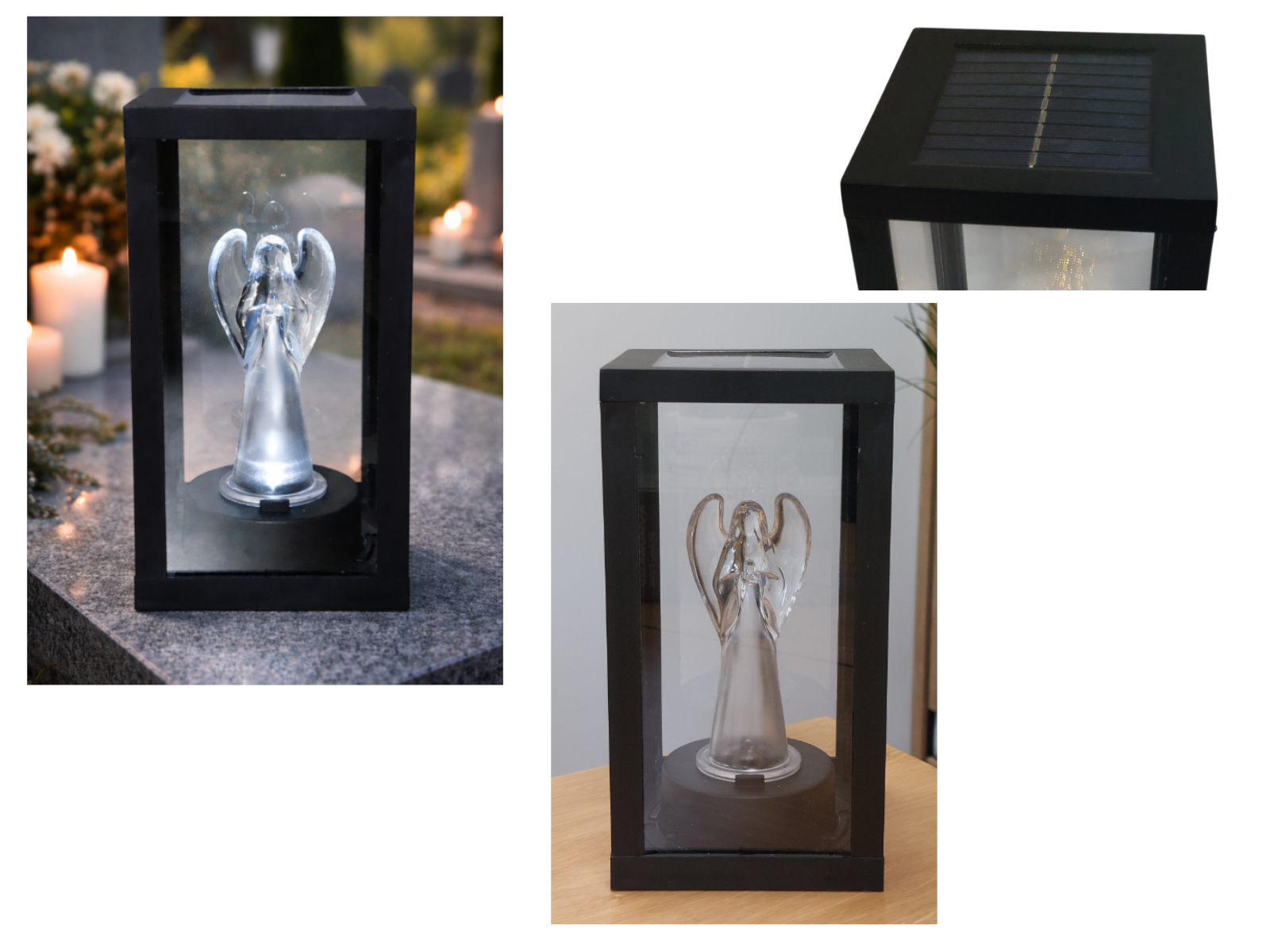 Latarenka SOLARNA szkło-plastik z akrylowym stojącym Aniołem 20x10x10 - CZARNA