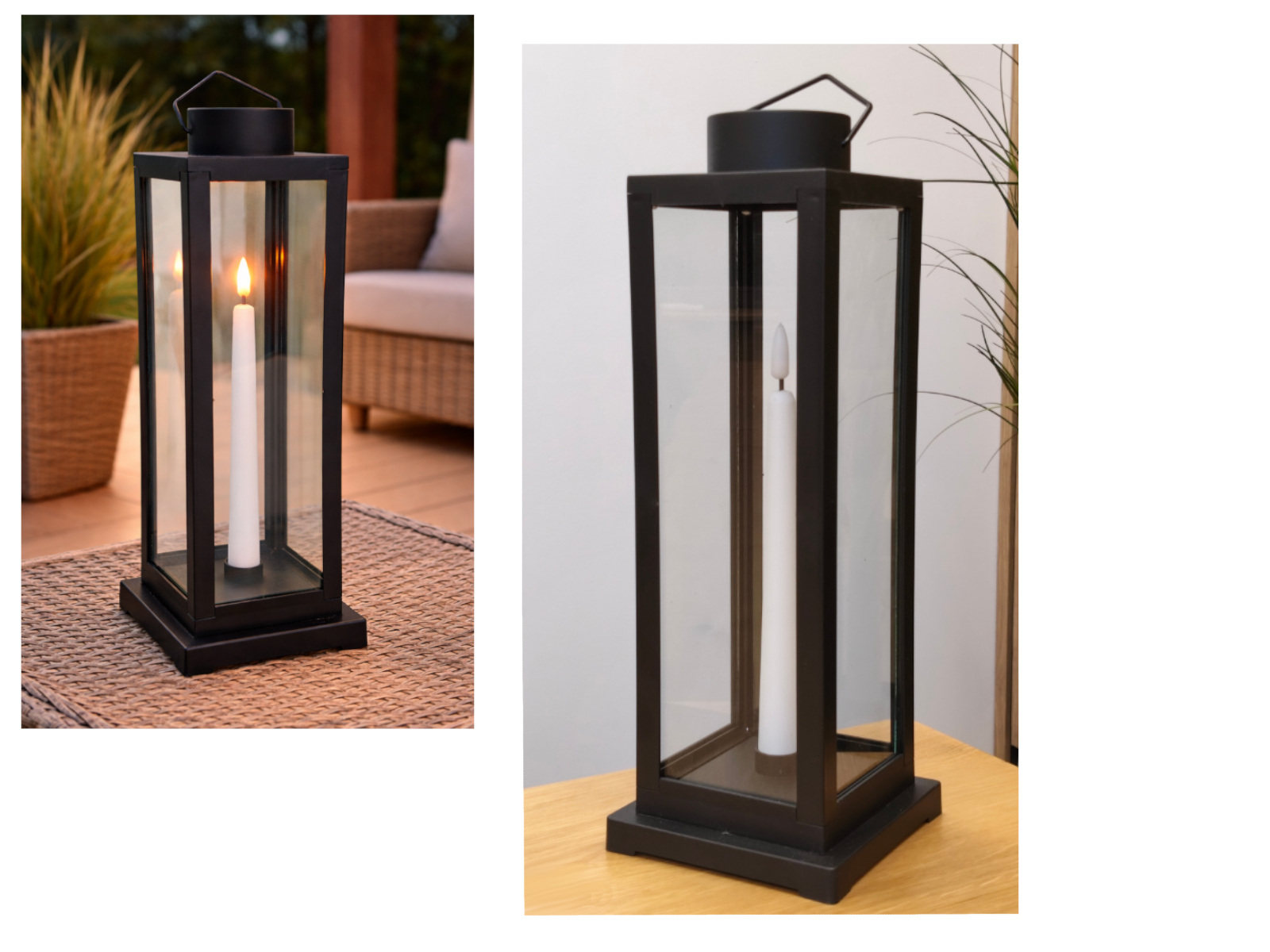 Latarenka szkło-plastik z świecą 36x11x11 cm - CZARNA