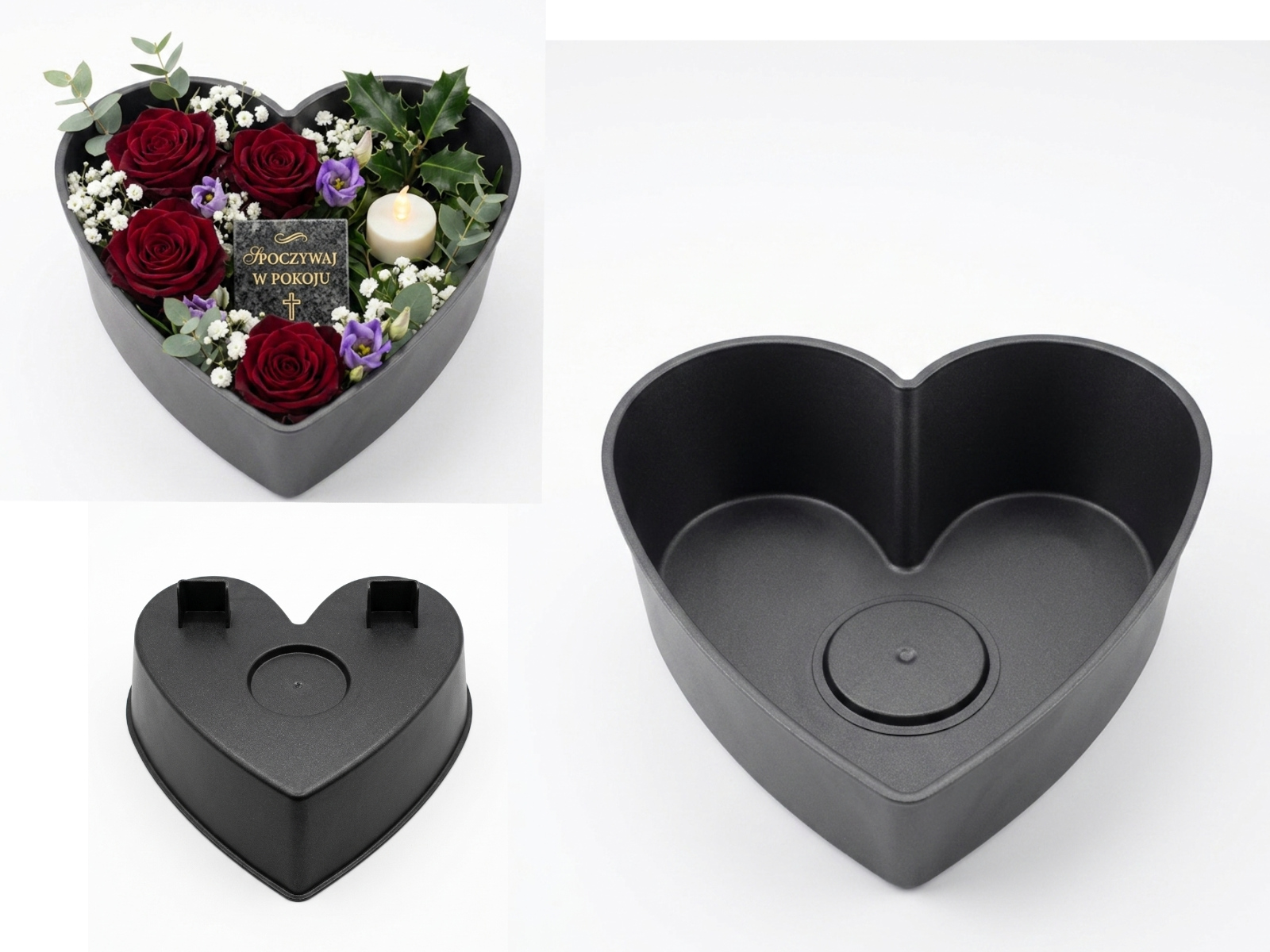 Doniczka, MISA do kompozycji SERCE Z NÓŻKĄ 22x22x10 cm - GRAFIT