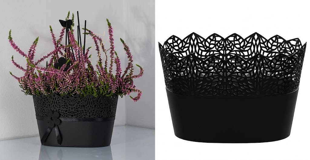 Osłonka, doniczka CORONA czarna DUO 26x15,5x13,5 cm - 1 szt