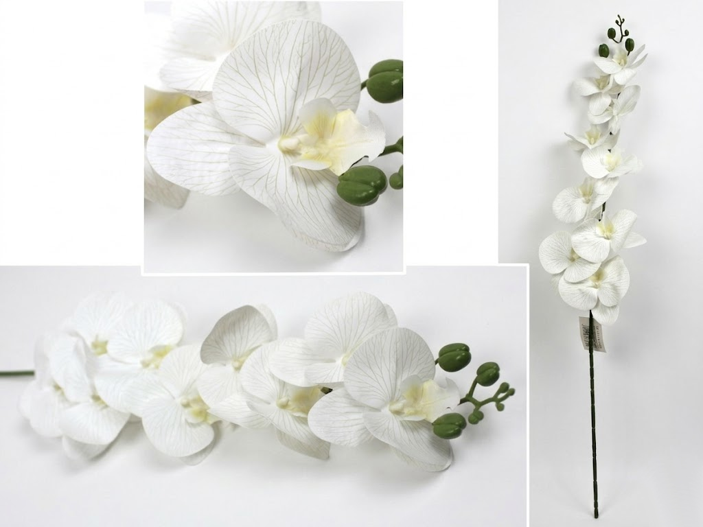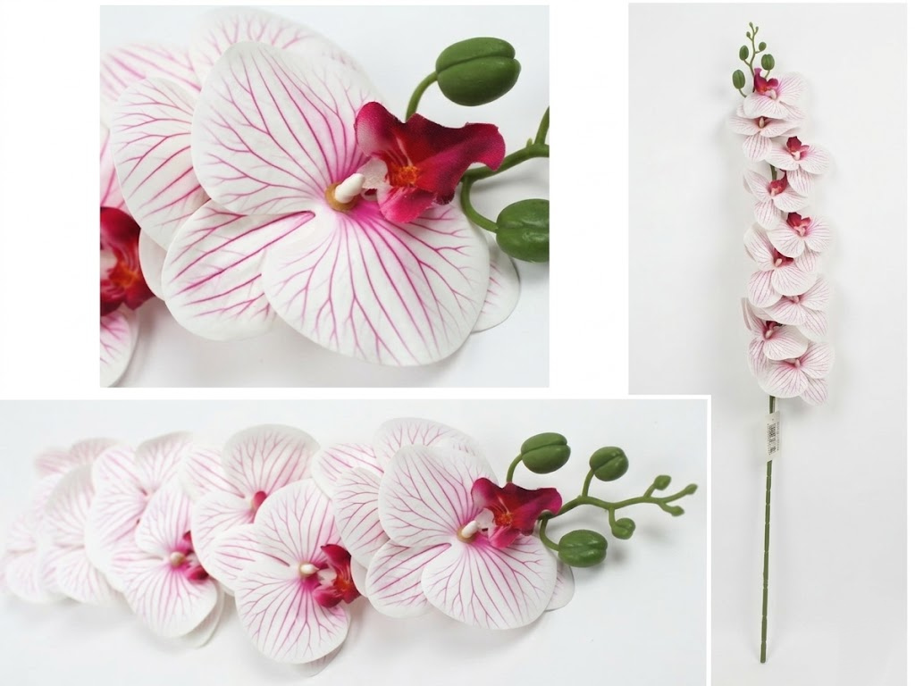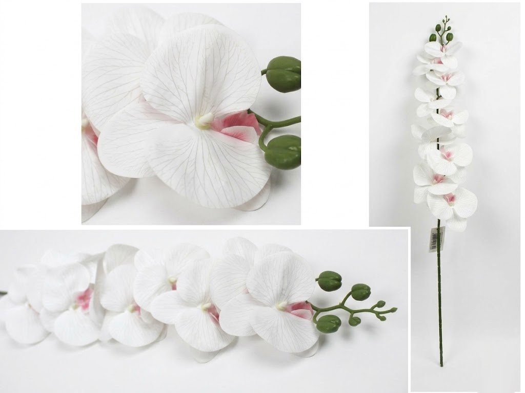 Kwiat STORCZYK silikonowy 3D PRINT 80 cm (9 kwiatów 11-9 cm) nakrapiany biały z zielonym środkiem