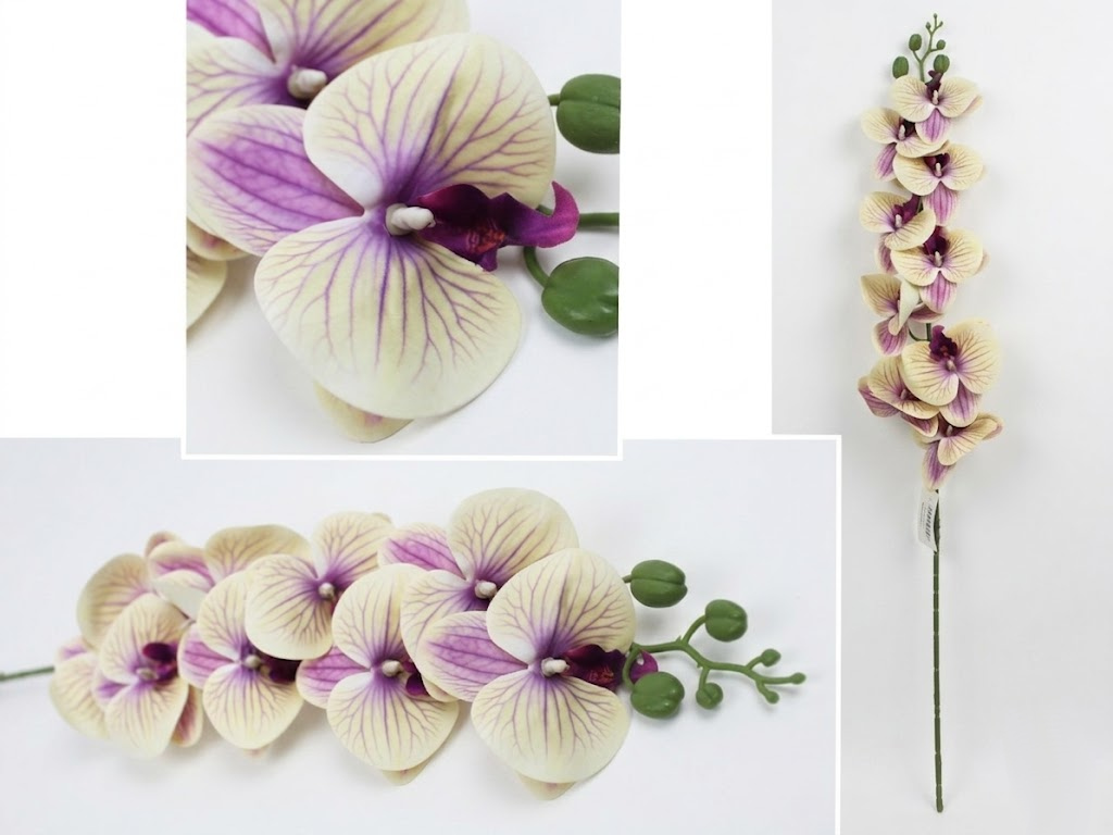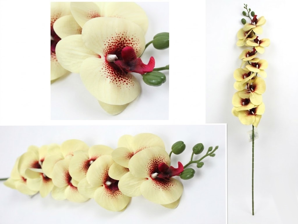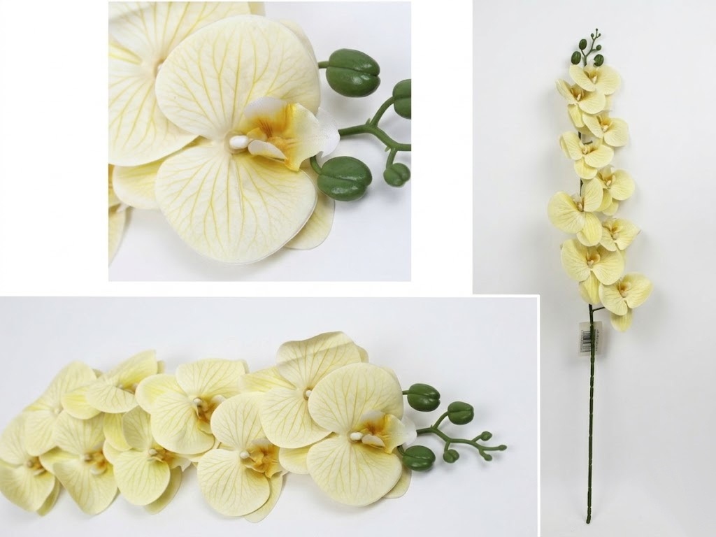 Kwiat STORCZYK 3D PRINT wys. 105 cm (9 kwiatów 11,5-10 cm + pąki) KREMOWO-ŻÓŁTY jasny nakrapiany