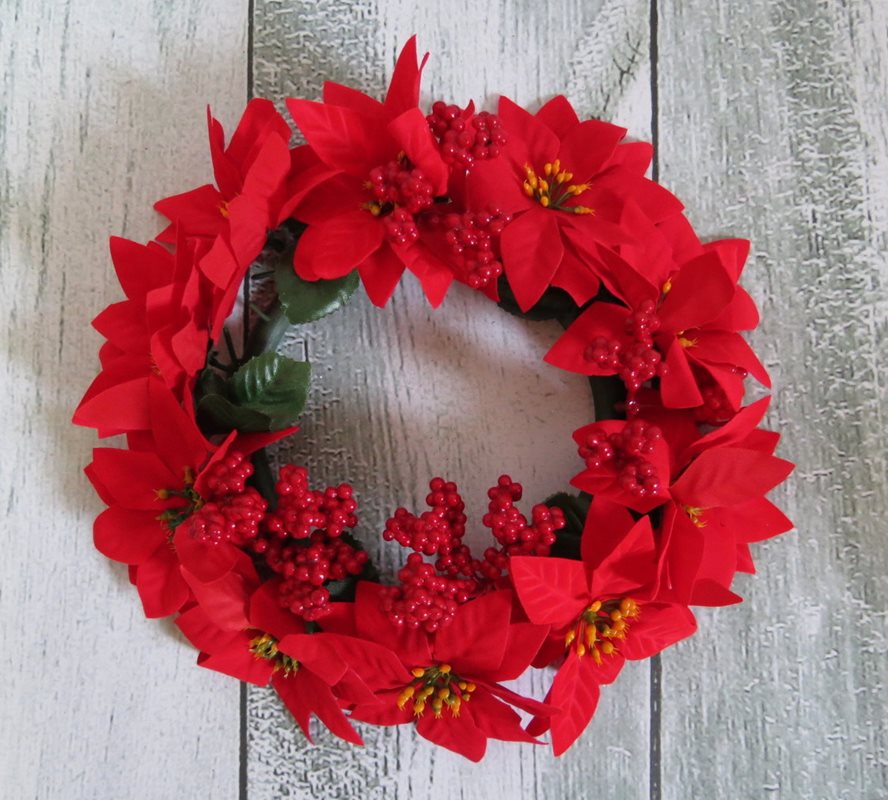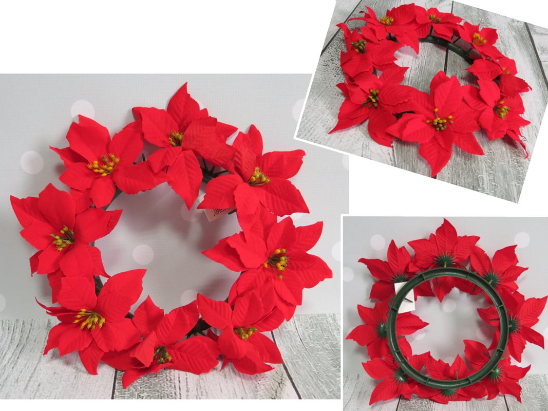 Wianek z Gwiazdy betlejemskiej, POINSECJI 8 kwiatów średnica 25 cm, kwiat 12 cm - CZERWONY