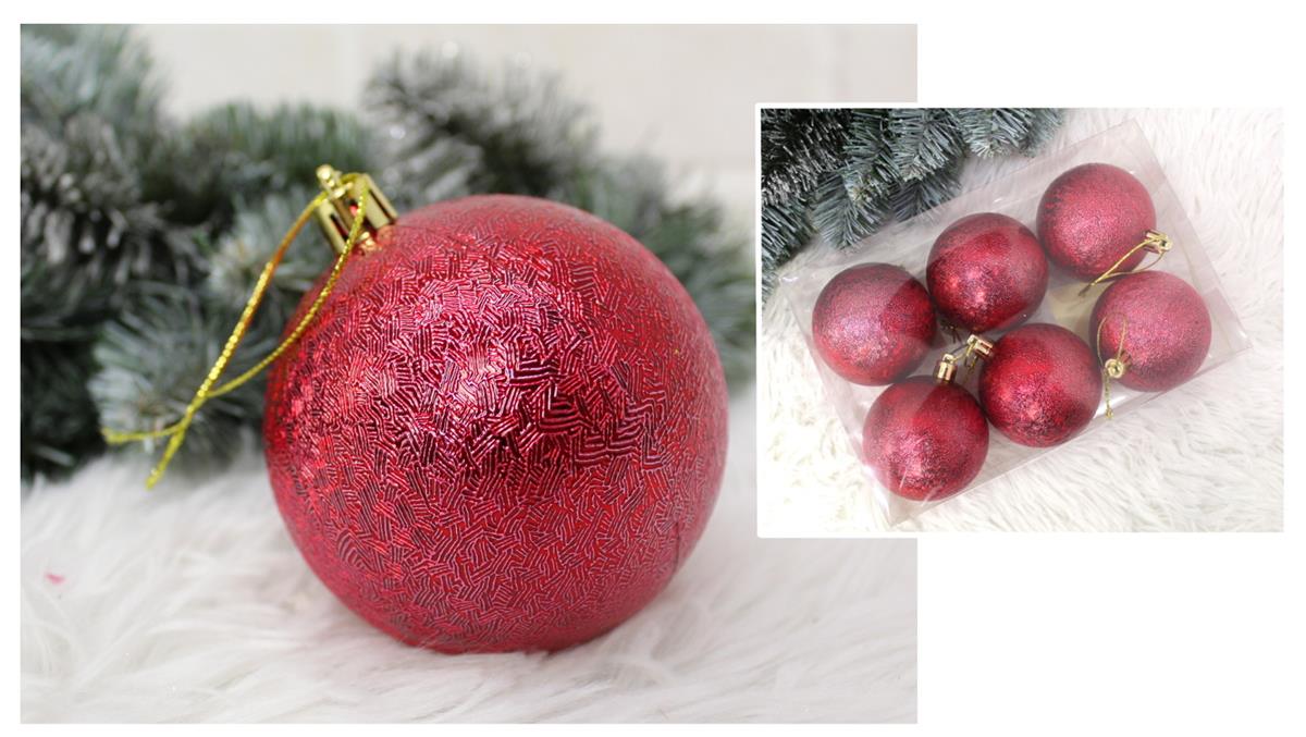 Bombki plastik młotkowane 6,5 cm - kpl 6 szt CZERWONO-RÓŻOWE