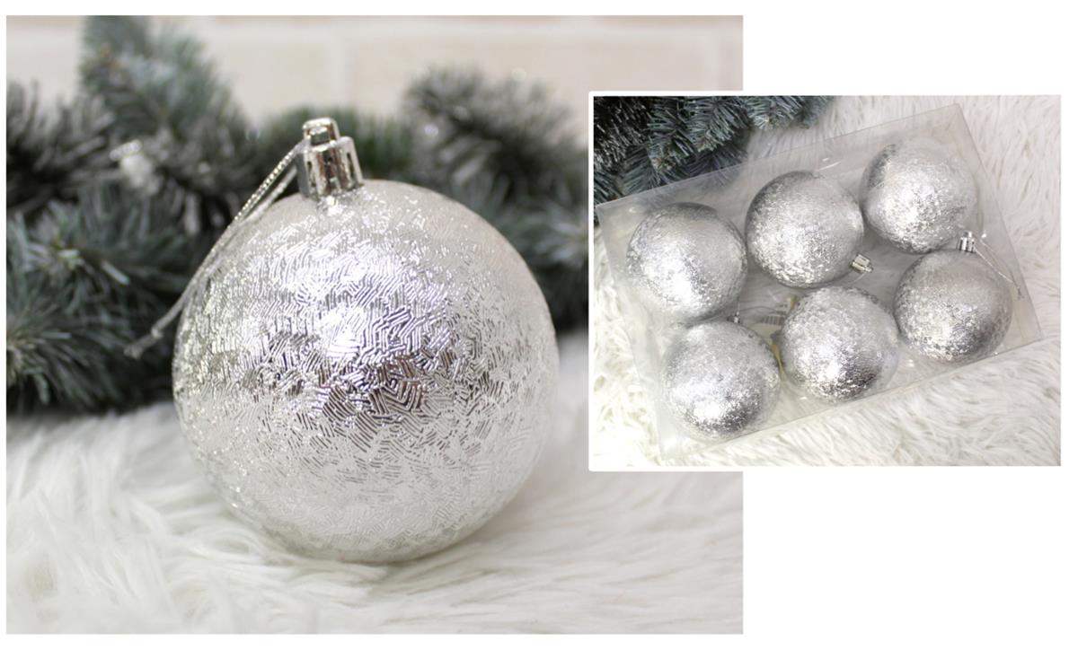 Bombki plastik młotkowane 6,5 cm - kpl 6 szt SREBRNE
