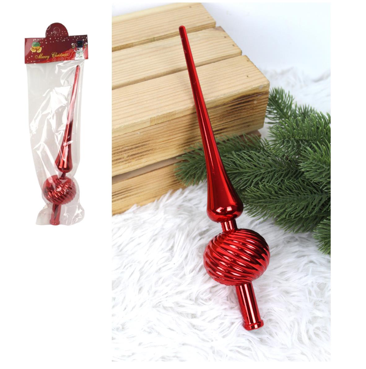 Czubek choinkowy plastikowy 28 cm CZERWONY tłoczony wzór