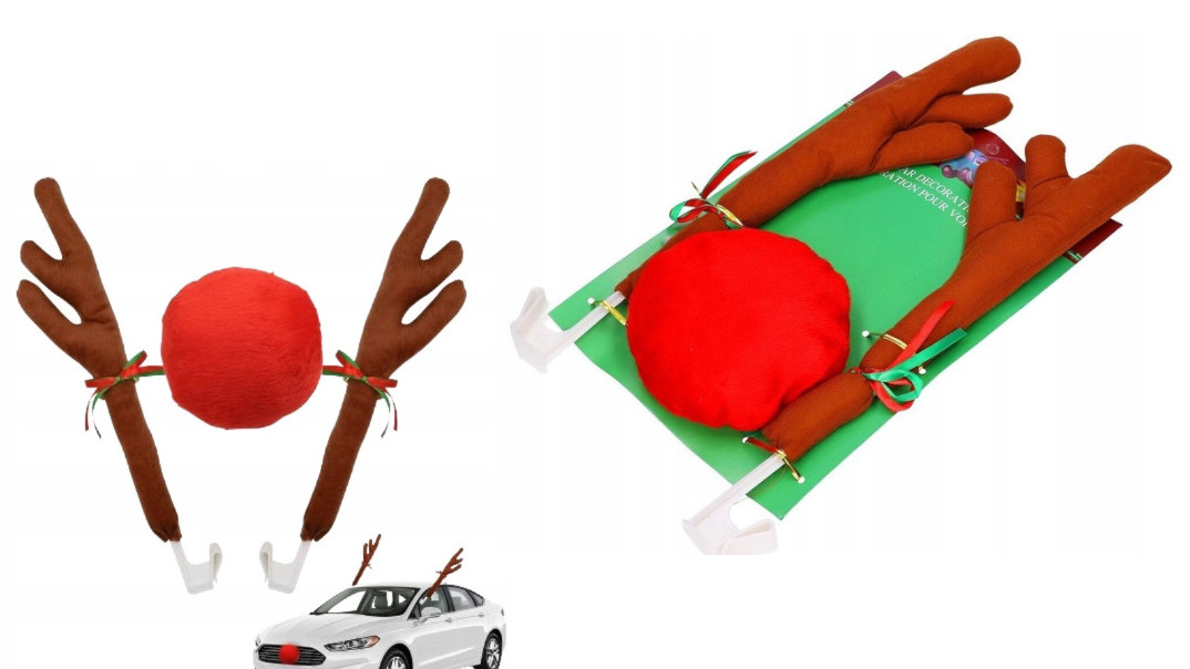 Dekoracja samochodowa ROGI RENIFERA z czerwonym nosem