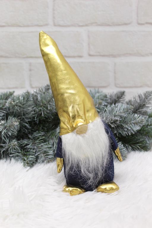 Skrzat bożonarodzeniowy, świąteczny materiałowy 25x9x9 cm - ZŁOTO-GRANATOWY