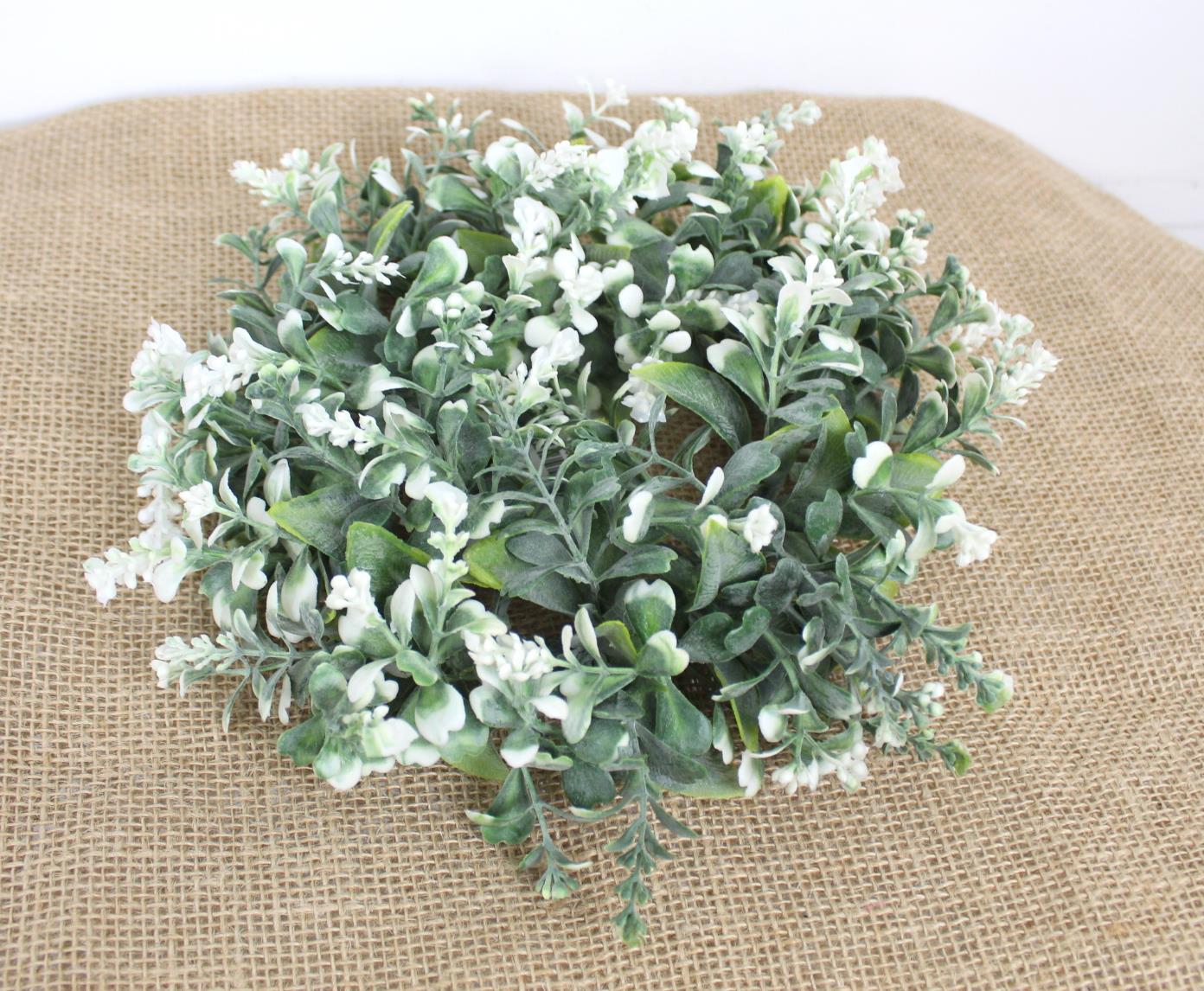 Wianek ozdobny zielony BIELONY z białym dodatkiem 24 cm