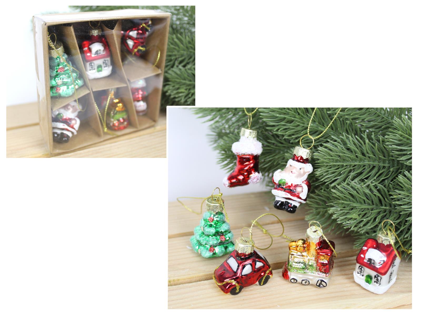 Zawieszka szklana (4 cm) ŚWIĄTECZNA  w kartoniku 11x11x4 cm - kpl 6 szt