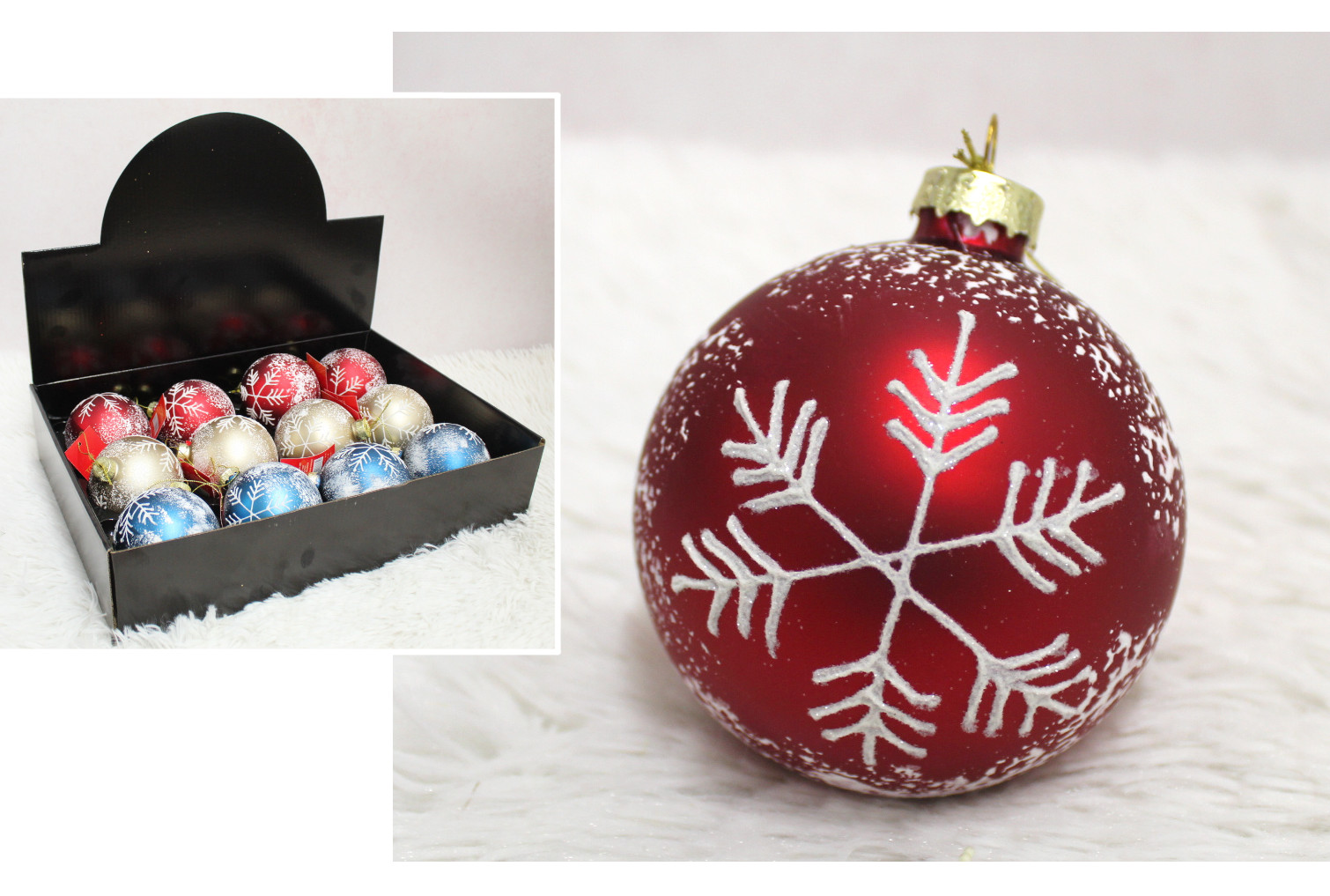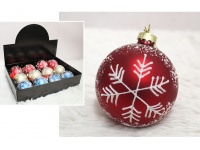 Bombka szklana MIX 3 KOLORY malowana ŚNIEŻYNKA 8 cm