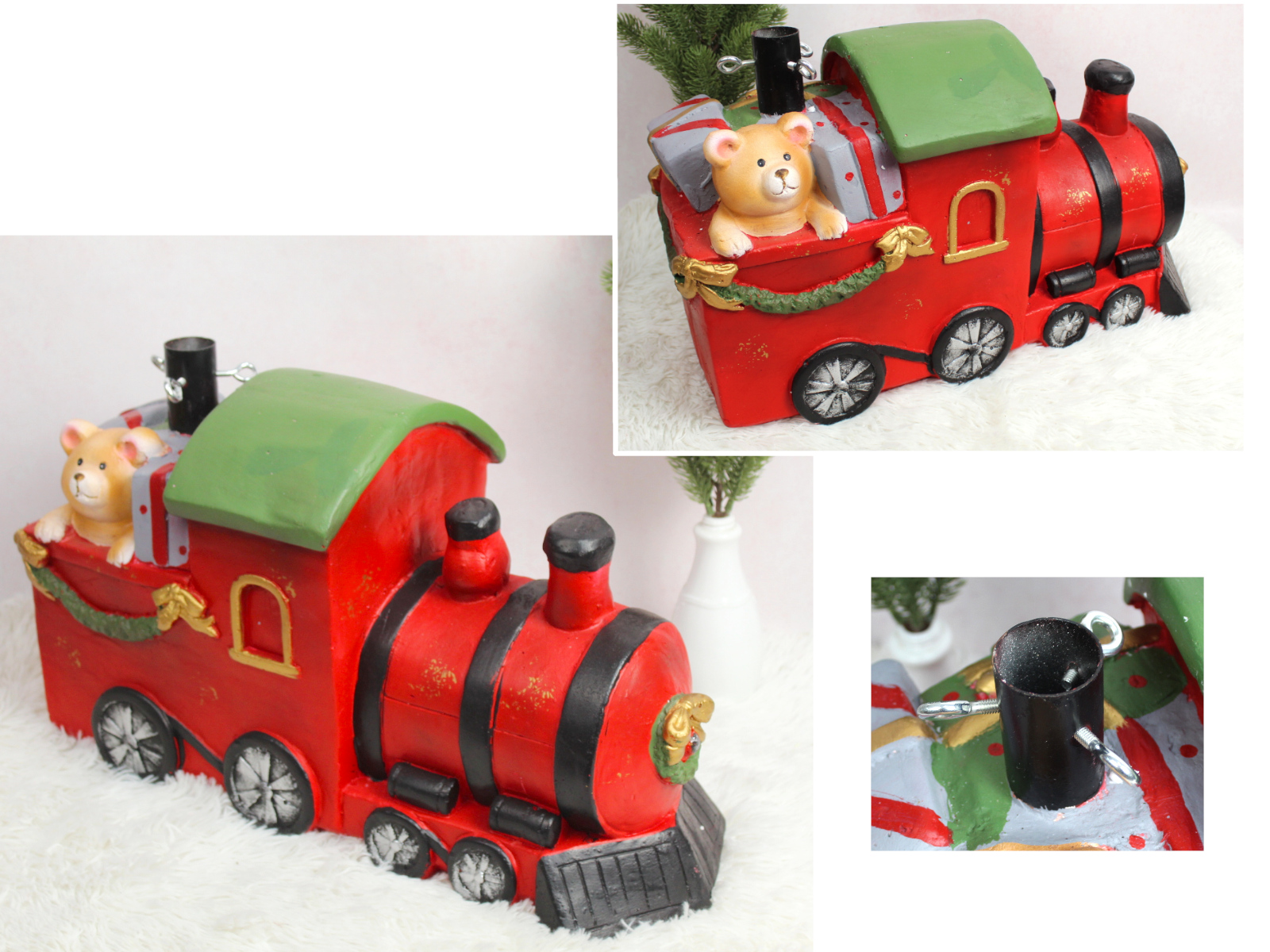 Stojak pod choinkę ceramiczny POCIĄG 57x38x22 cm - CZERWONO-ZIELONY