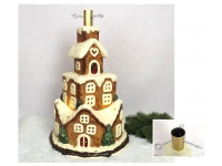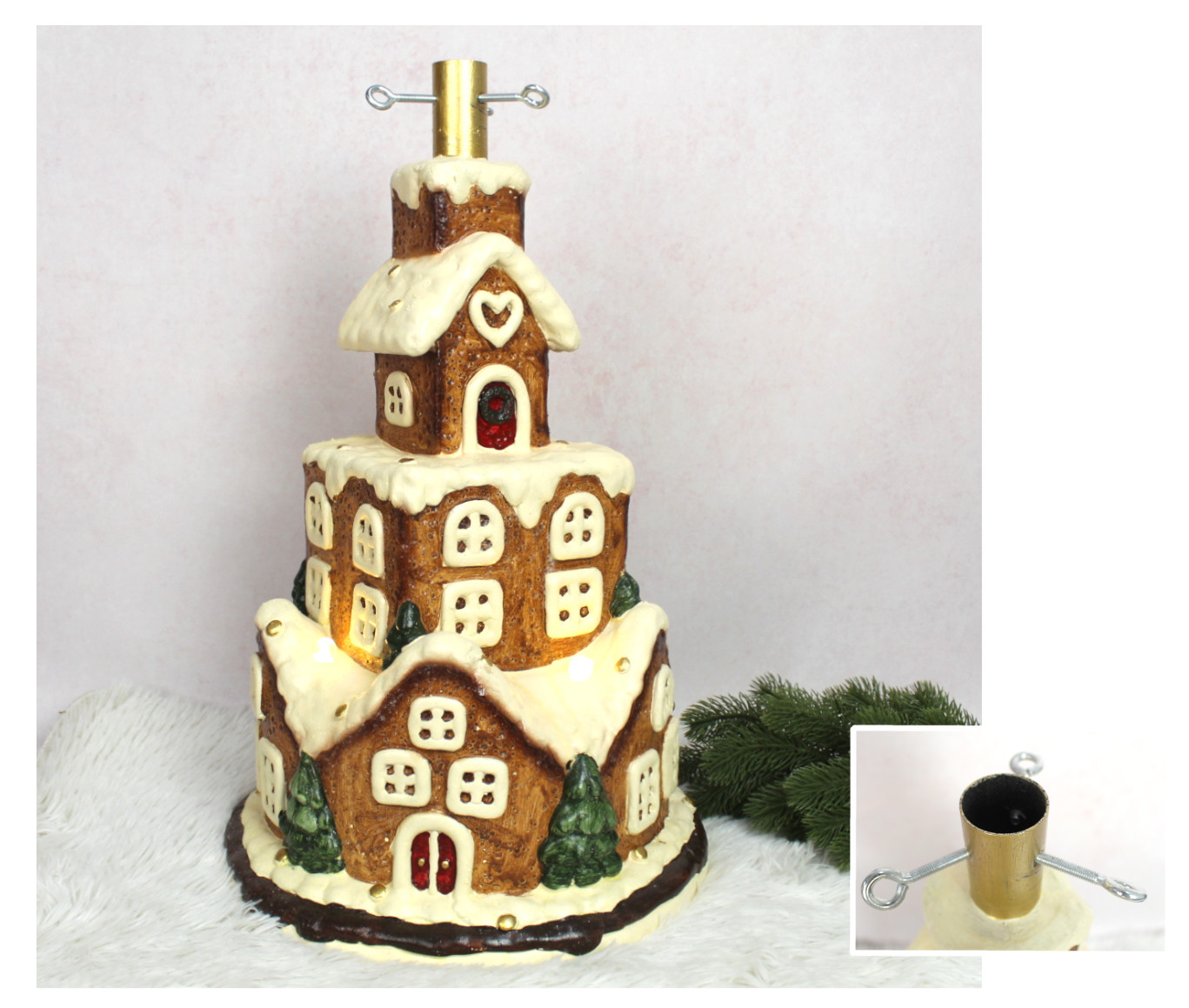 Stojak pod choinkę ceramiczny DOMEK, TORT PIERNIKOWY LED 57x34 cm - KREMOWO-BRĄZOWY