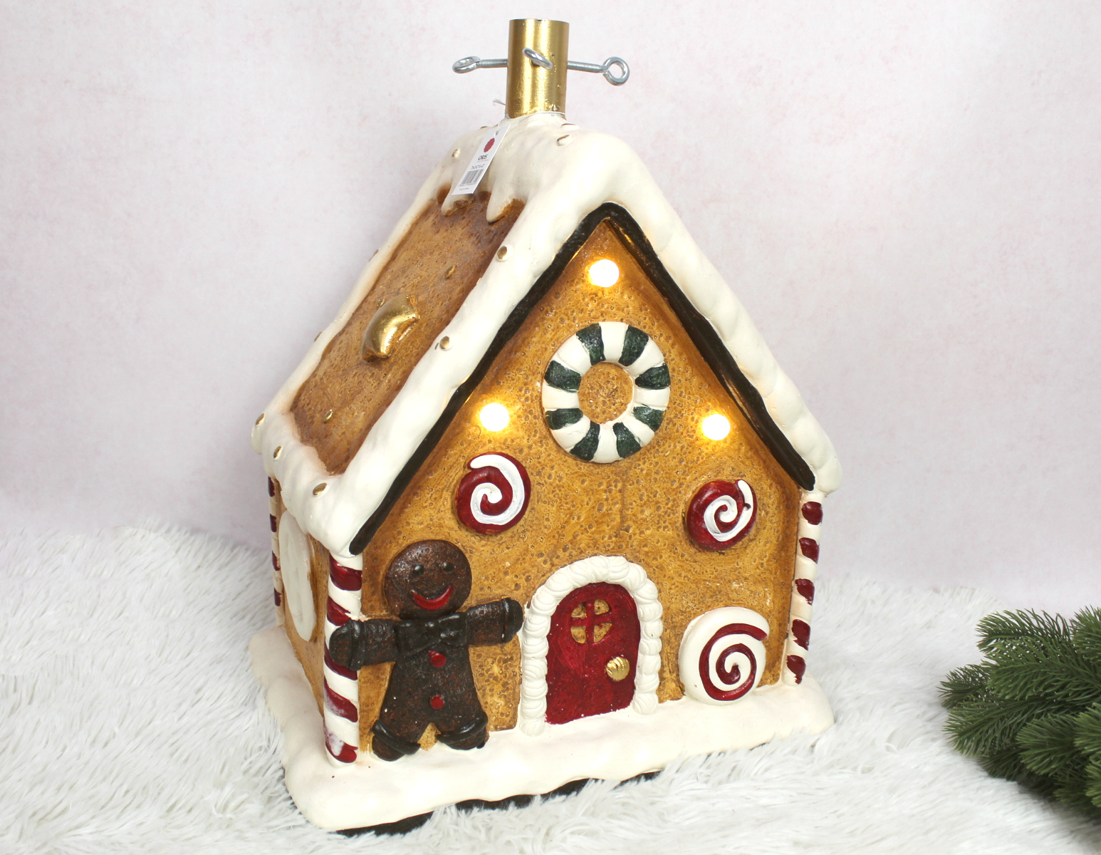 Stojak pod choinkę ceramiczny DOMEK PIERNIKOWY LED 48x34x24 cm - KREMOWO-BRĄZOWY
