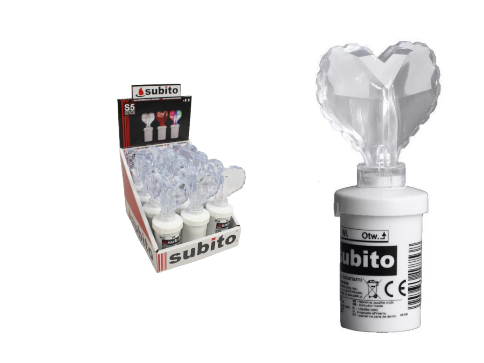 Wkład, znicz LED SUBITO S5 SERCE - TRANSPARENTNY RGB- 1 szt